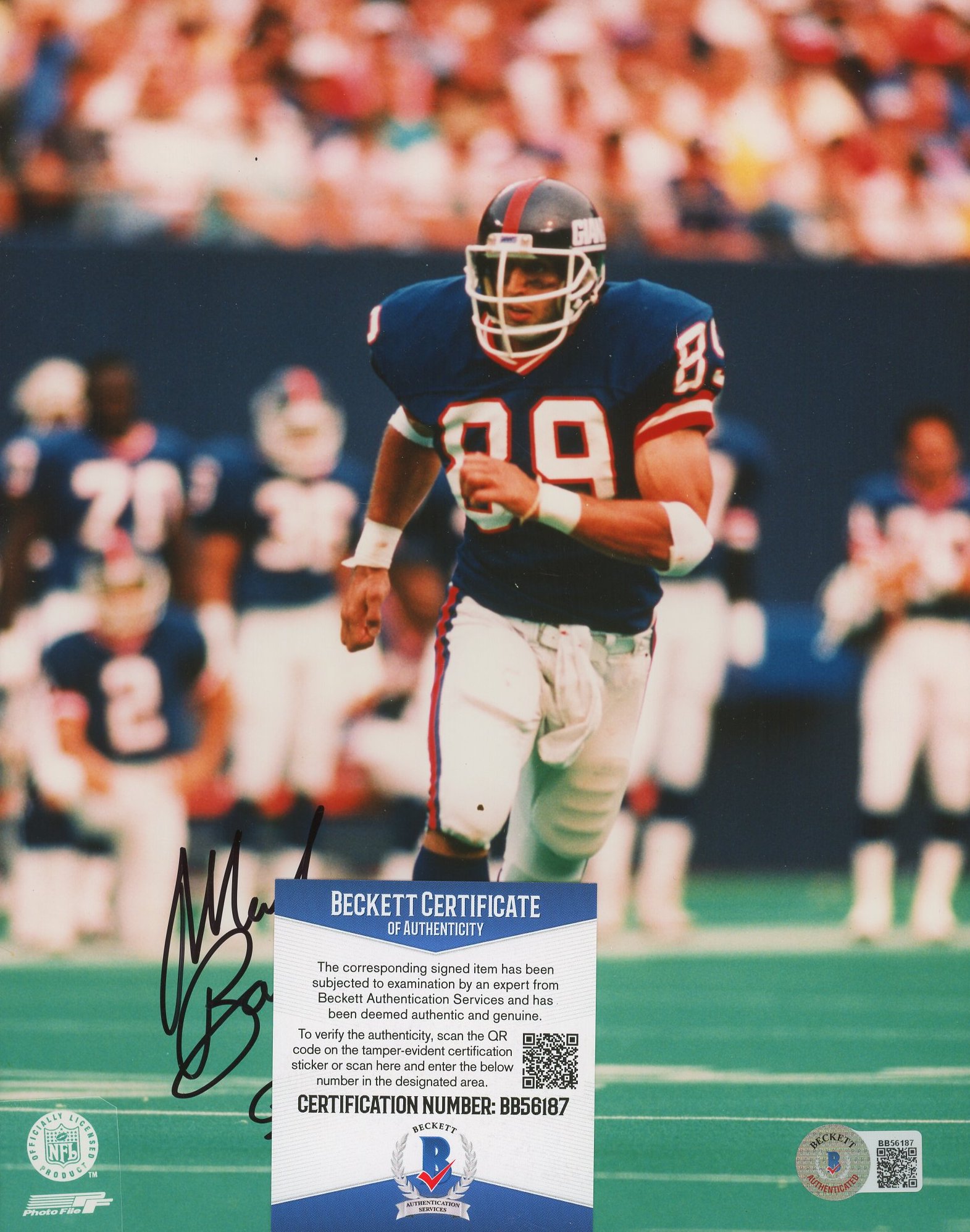 Photo measure 8" x 10" in size and has been hand-signed by Mark Bavaro (New York Giants).