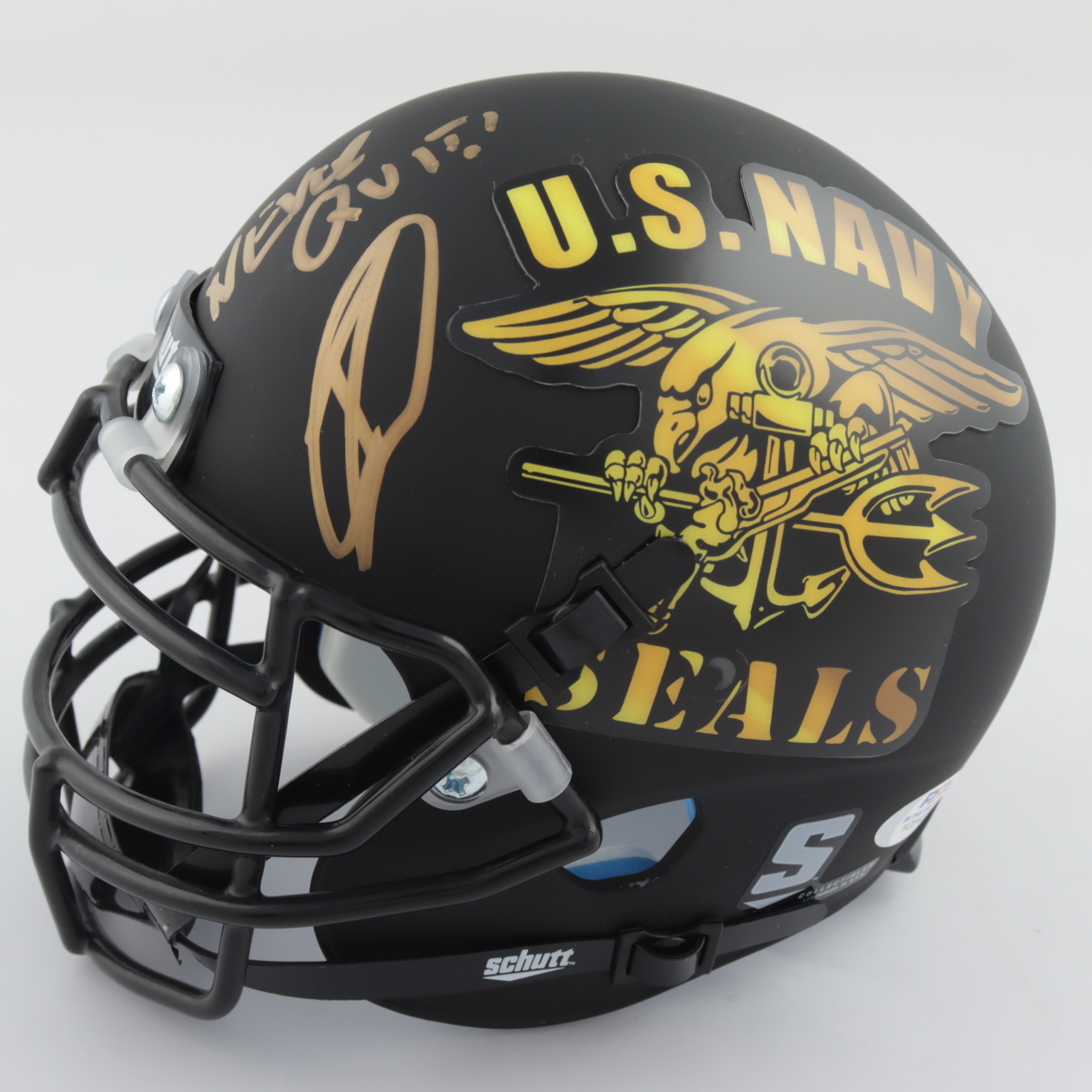 Robert O'Neill Signed "U.S. Navy SEAL" Matte Black Mini Helmet Inscribed "Never Quit!" (PSA COA)