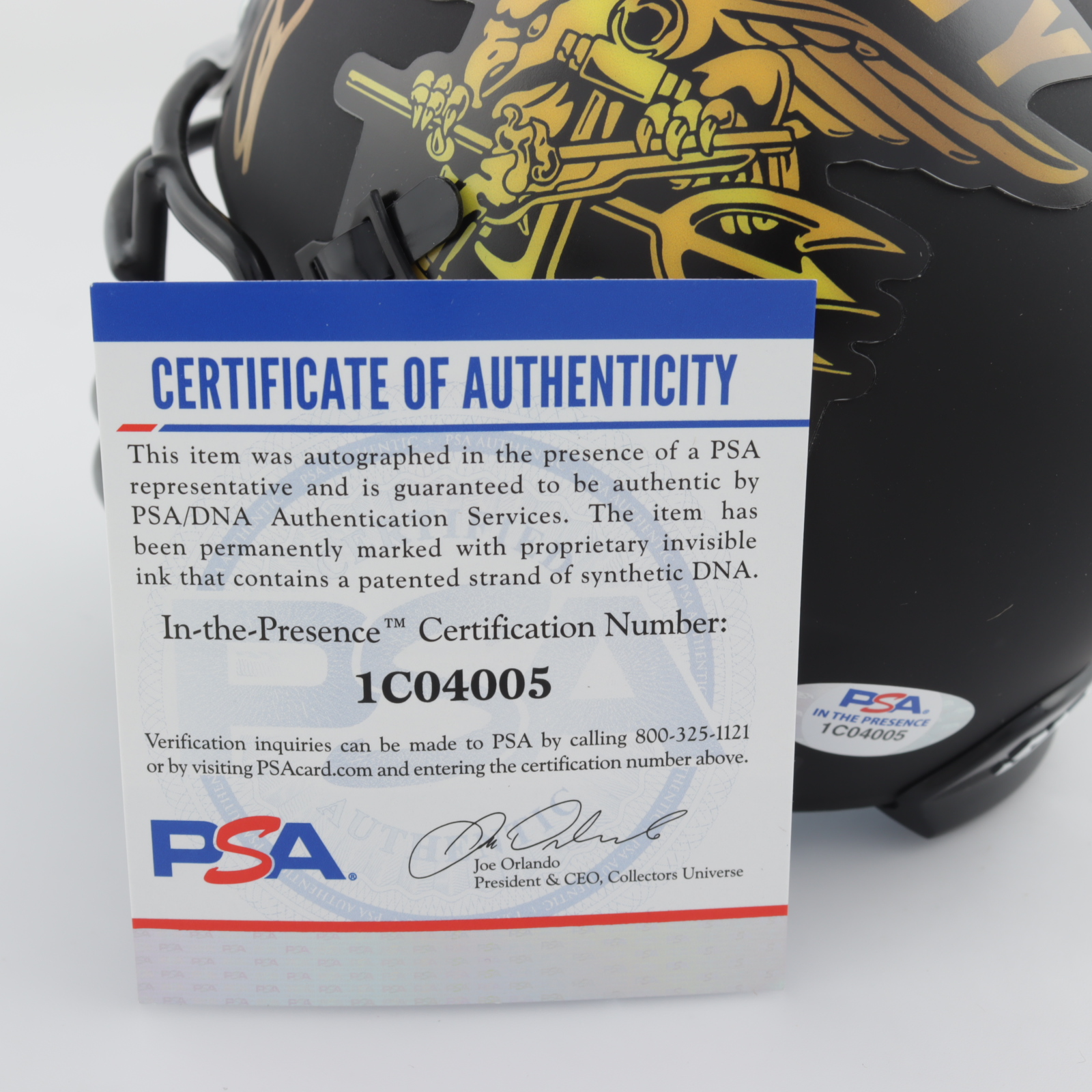Schutt "U.S. Navy SEAL" matte black mini helmet has been hand-signed and inscribed by Robert O'Neill.