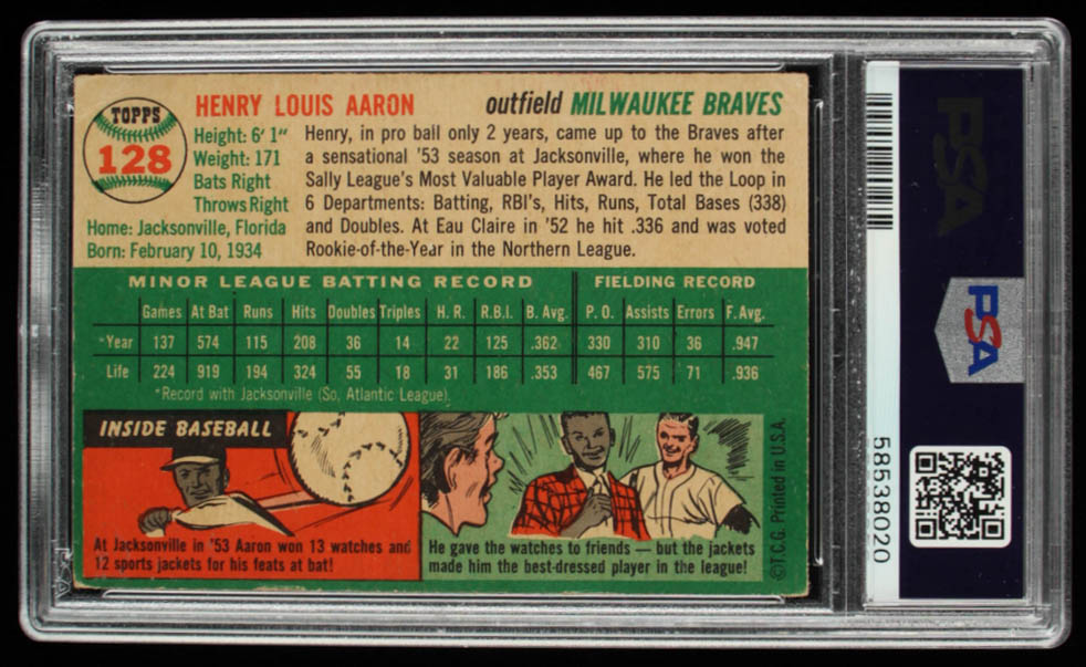 Hank Aaron 1954 Topps #128 RC (PSA 2)