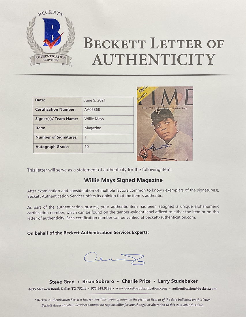 Willie Mays Signed "Time" Magazine (Beckett LOA)