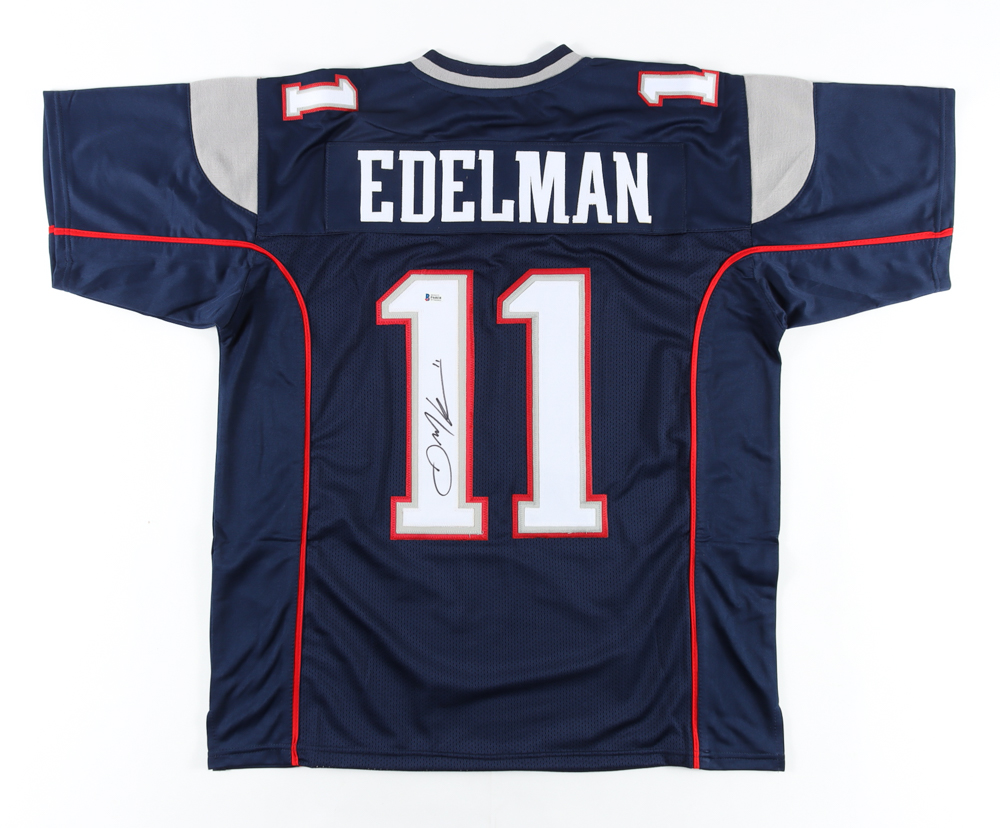Custom on-field style jersey. Everything is sewn on, size XL. Hand-signed by Julian Edelman.