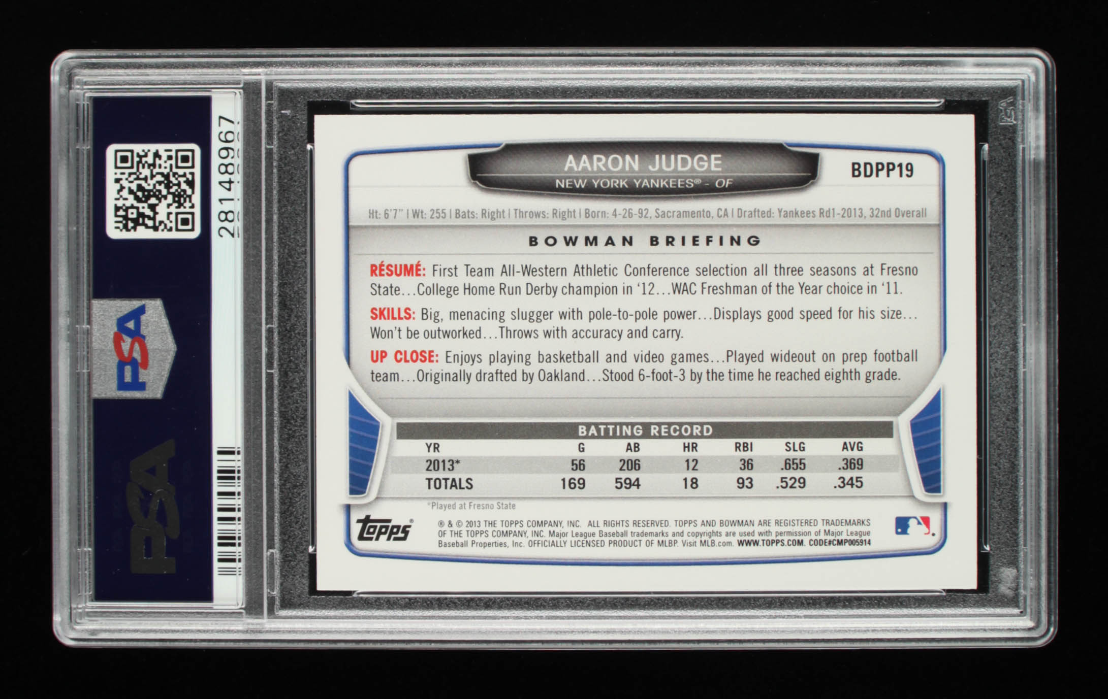 Aaron Judge 2013 Bowman Draft Draft Picks #BDPP19 (PSA 10)