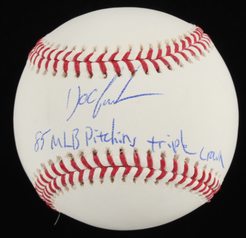 Dwight "Doc" Gooden Signed OML Baseball Inscribed "85 MLB Pitching Triple Crown" (PSA COA)