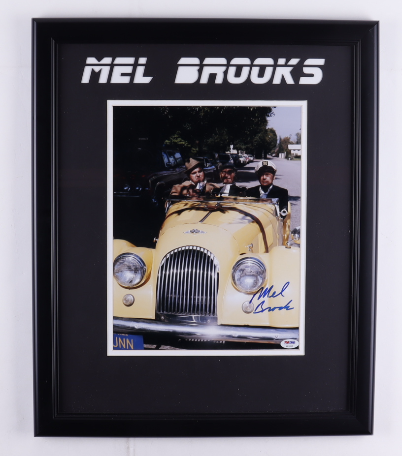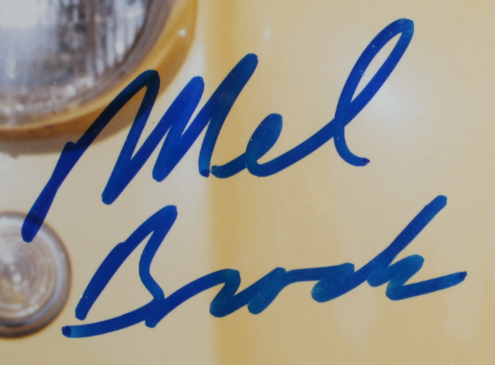 Custom frame measures 18" x 22" in size and features a photo hand-signed by Mel Brooks.