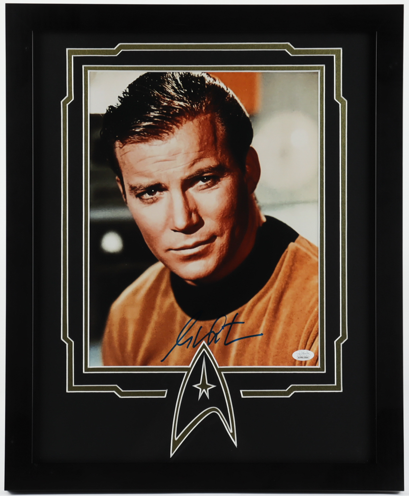 Custom frame measures 18" x 22" in size and features a photo hand-signed by William Shatner (Captain James T. Kirk).