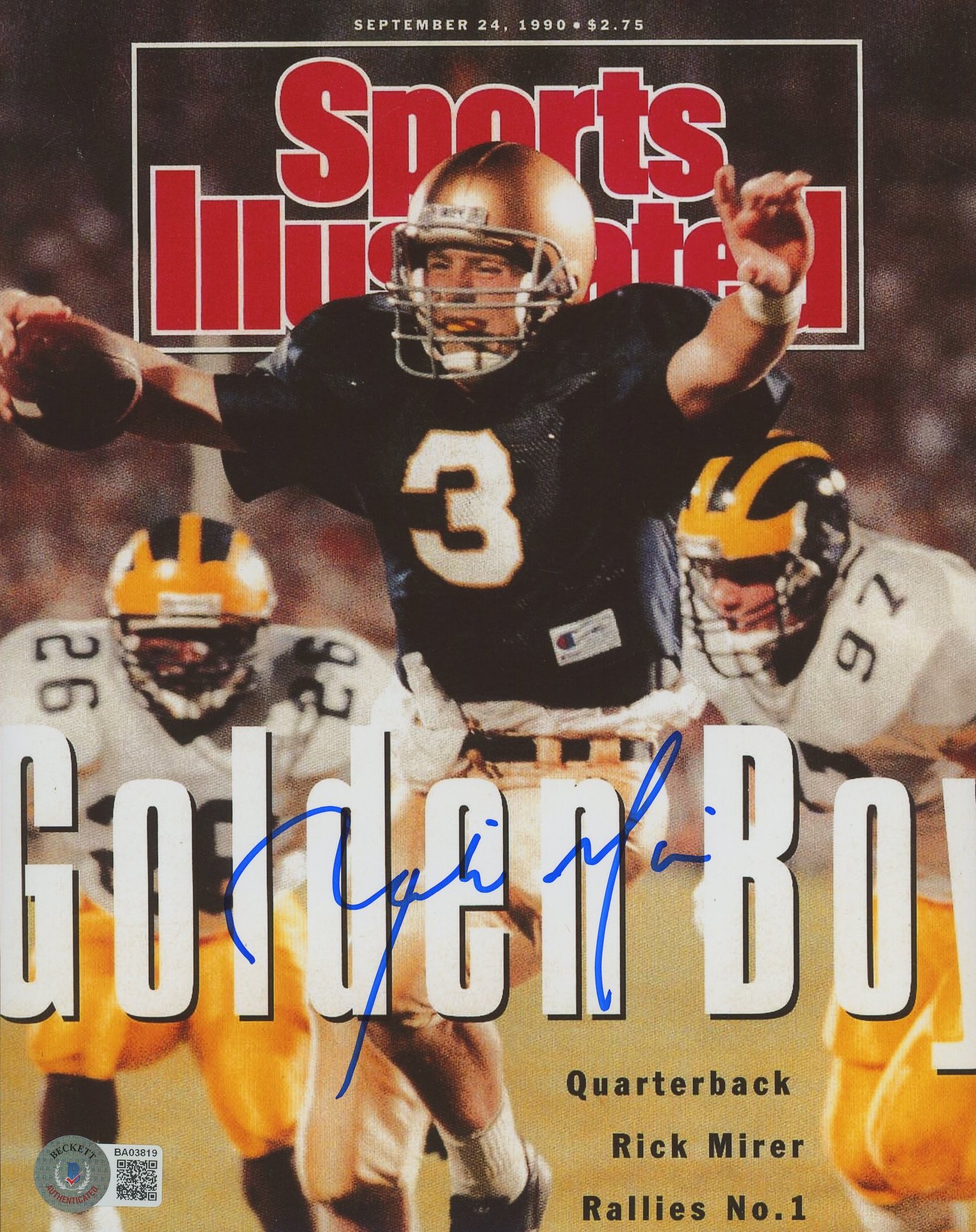 Photo measures 8" x 10" in size and has been hand-signed by Rick Mirer.