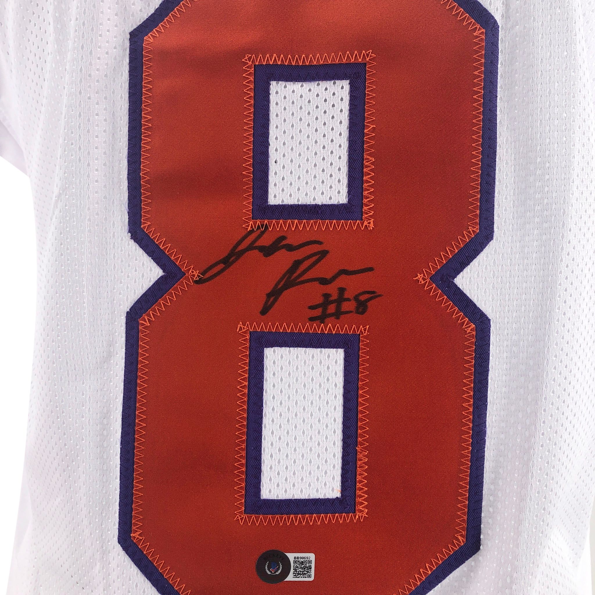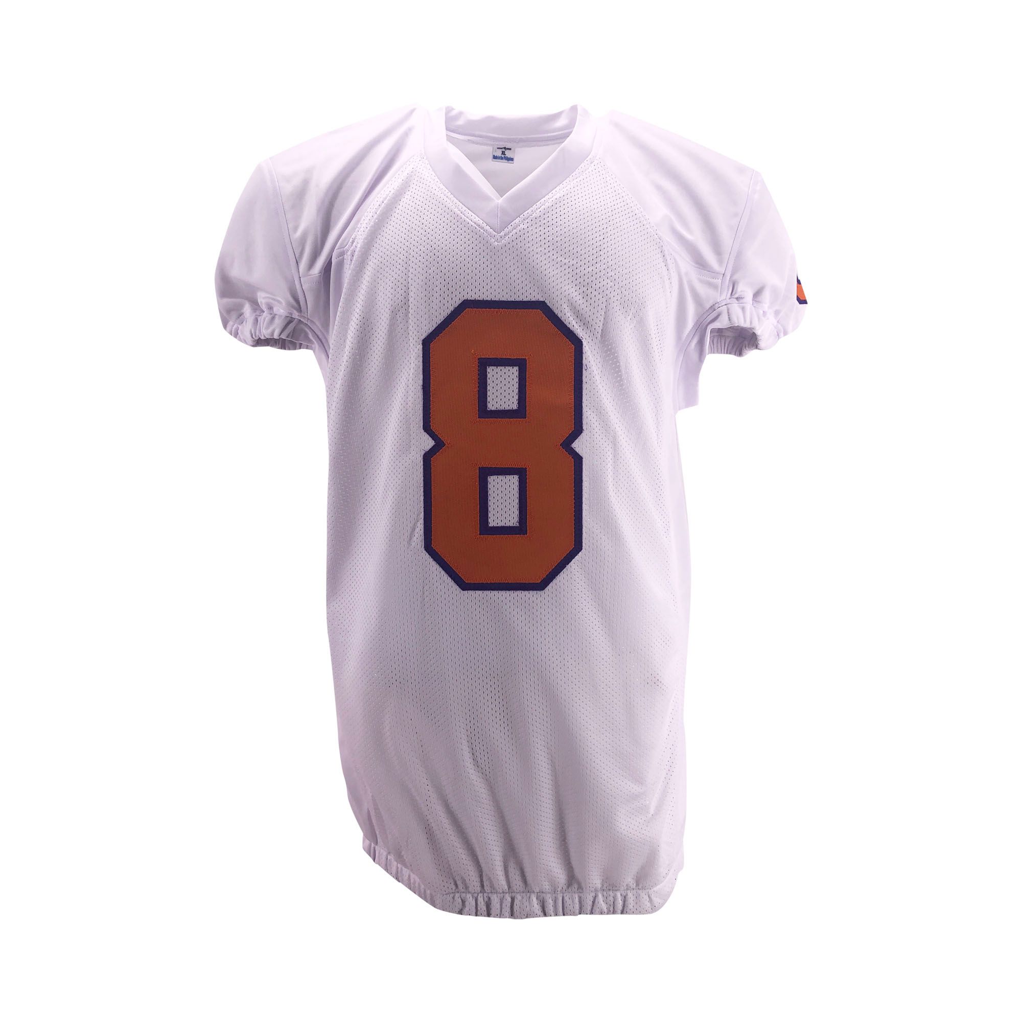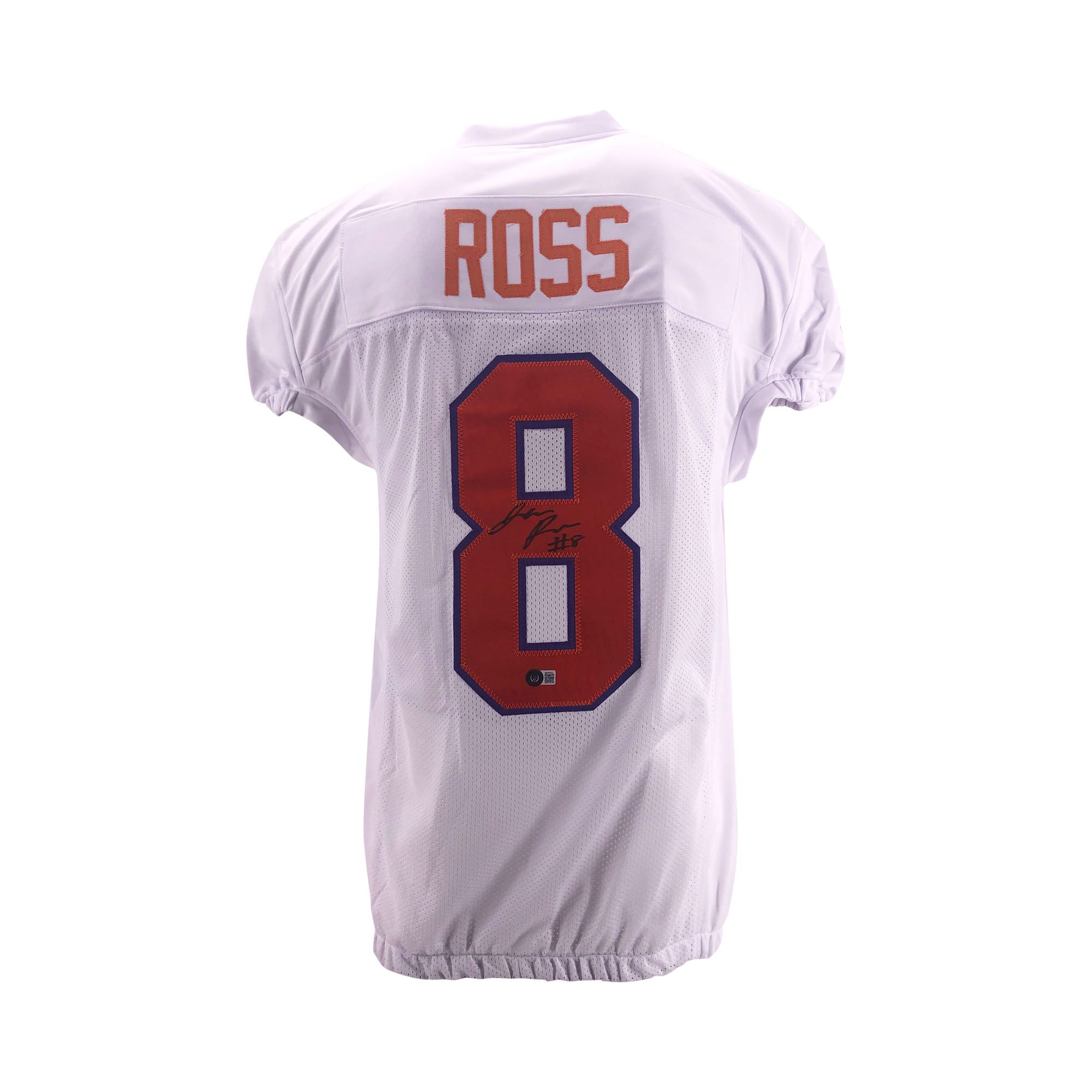 Custom on-field style jersey. Everything is sewn on, size XL. Hand-signed by Justyn Ross.