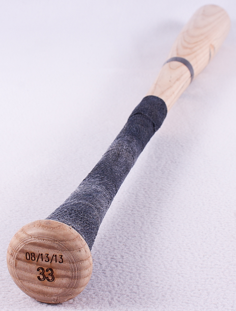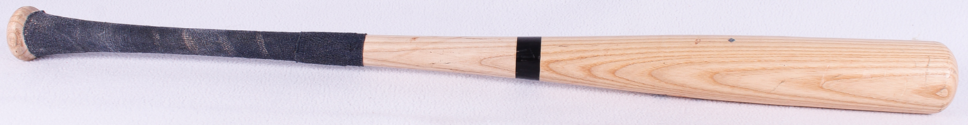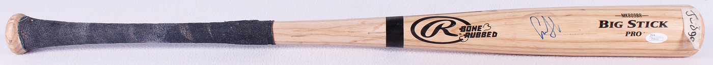 Rawlings Bone Rubbed Big Stick baseball bat. Hand-signed in blue felt-tip pen by Aaron Judge (Yankees). The bat has been game-used by an unknown player.