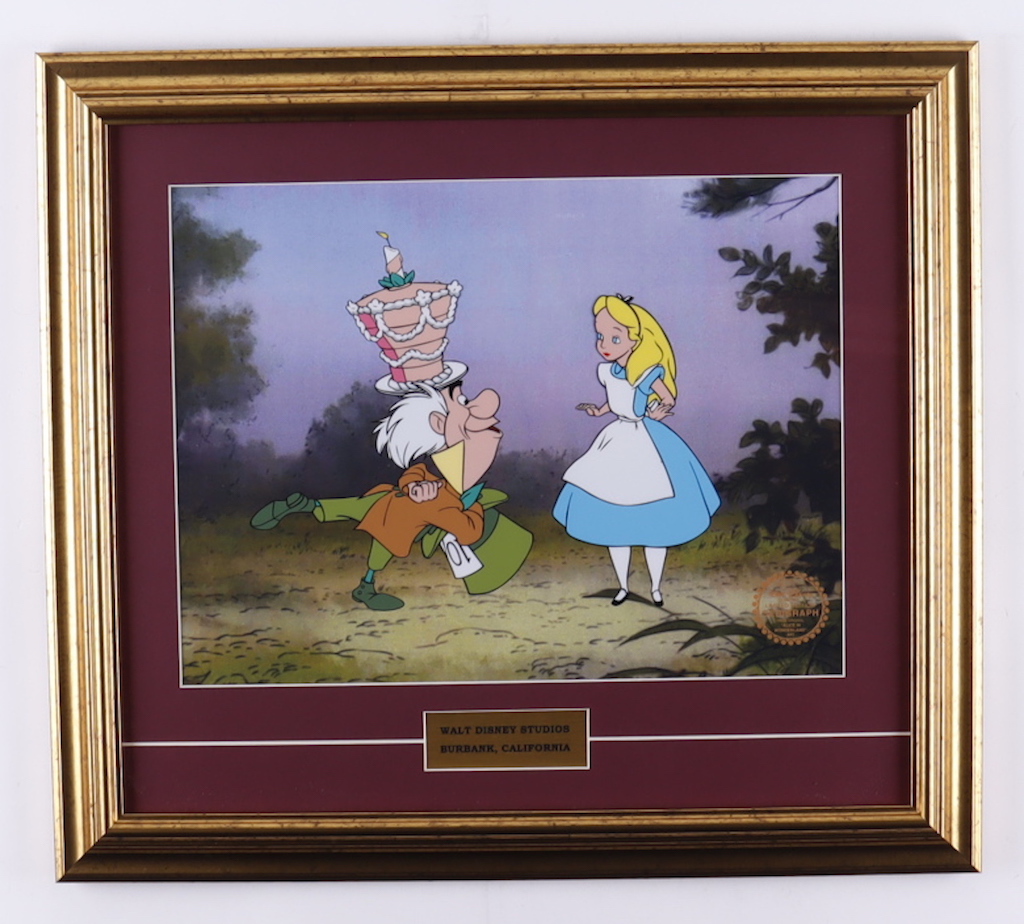 Frame measures 17" x 19" in size and features a two-piece animation serigraph cel from Walt Disney's "Alice in Wonderland."