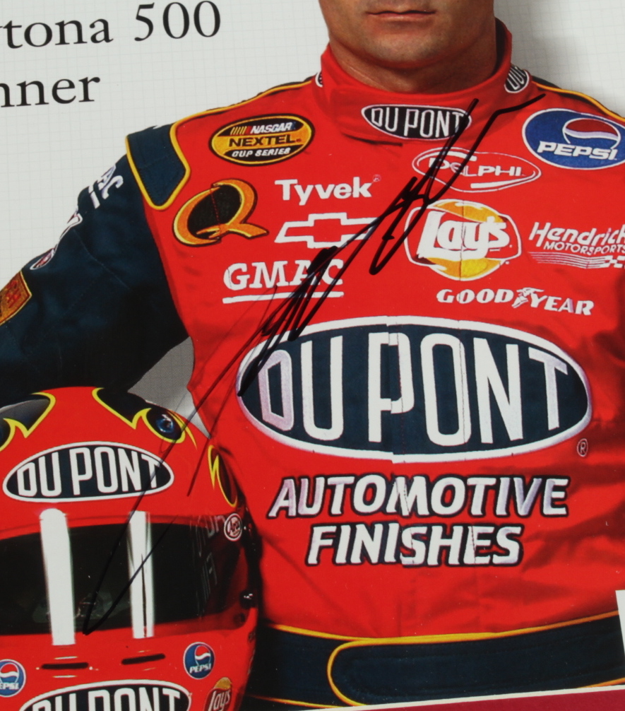 Frame measures 13.5" x 16.5" in size and features a photo that has been hand-signed by Jeff Gordon (HOF). Please note, there frame shows minor signs of handling.