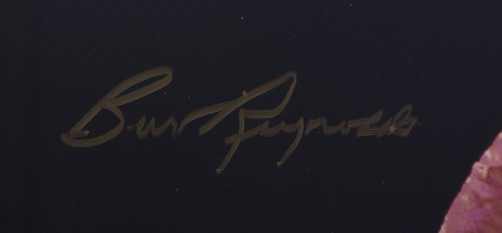 Custom framed photo measures 22" x 27" in size and has been hand-signed by Burt Reynolds (D. 2018, Bo Darville "Bandit").