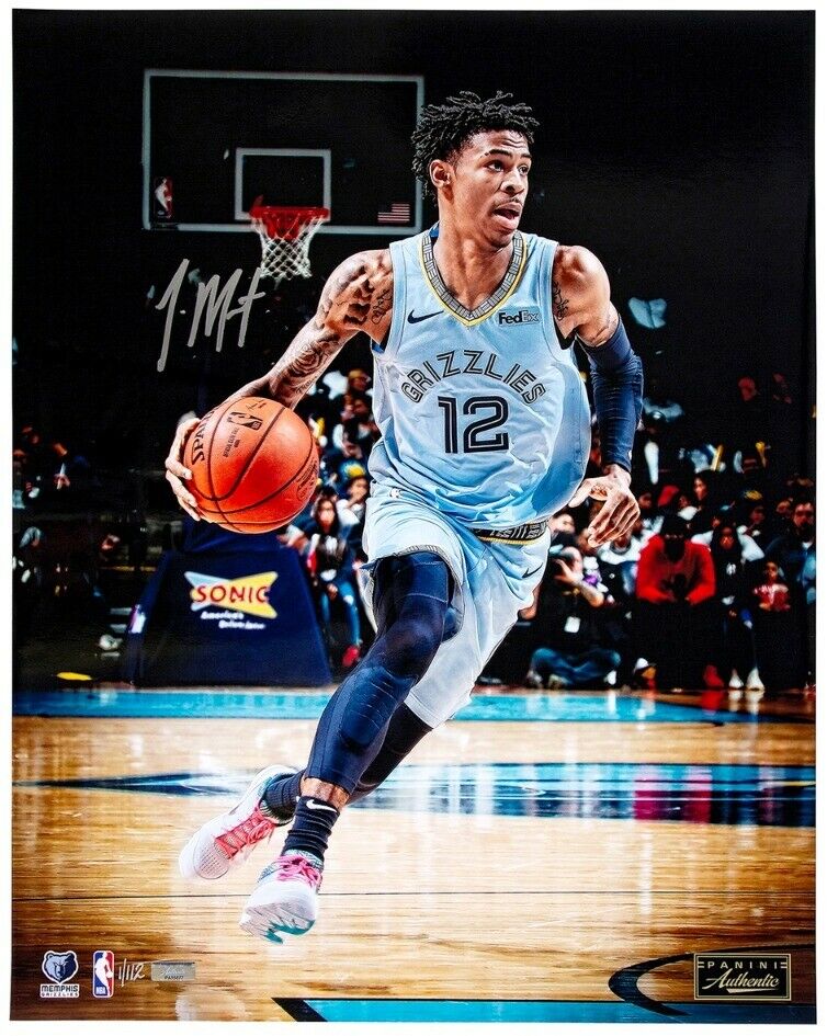 Photo measures 16" x 20" in size and has been hand-signed by Ja Morant (Memphis Grizzlies). The photo is a limited edition and has been hand-numbered #/112.