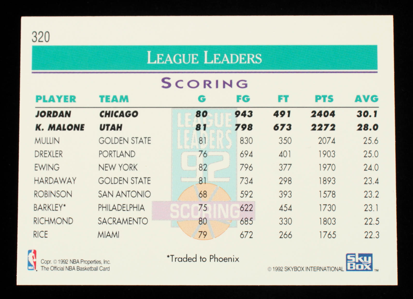 Michael Jordan / Karl Malone 1992-93 Hoops #320 Scoring League Leaders