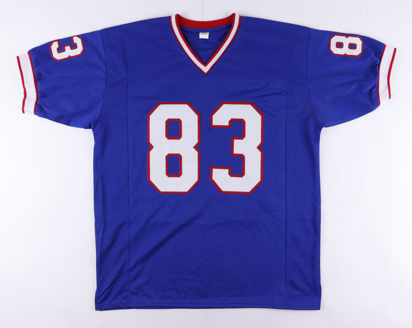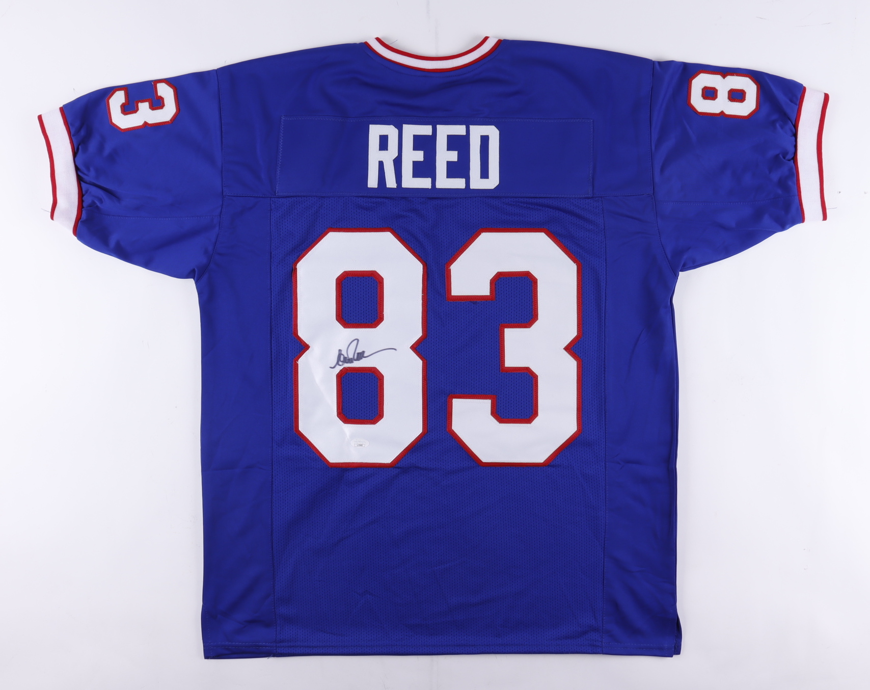 On-Field style jersey. Everything sewn on, size XL. Hand-signed by Andre Reed (HOF).