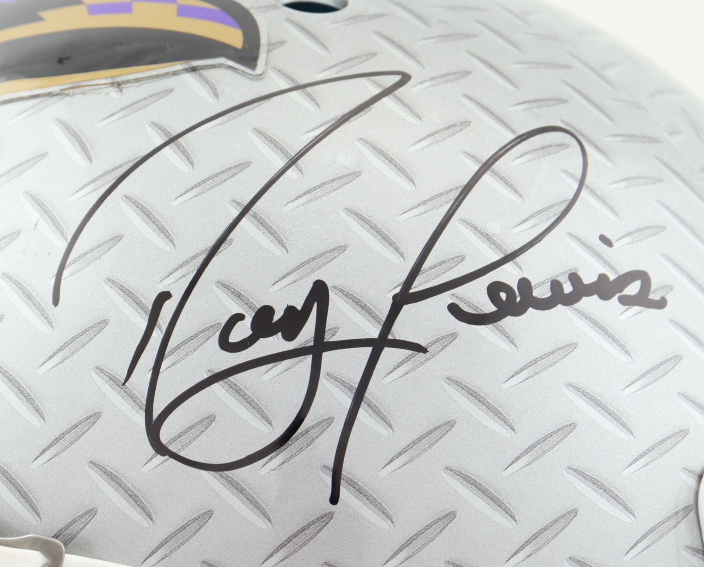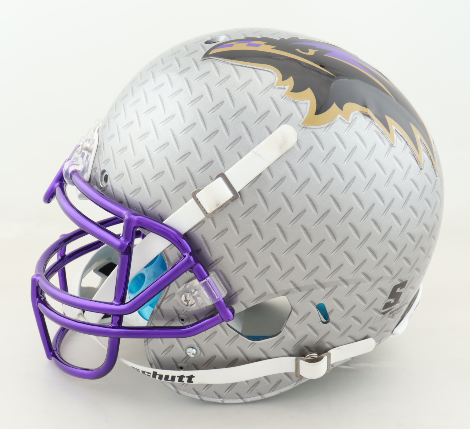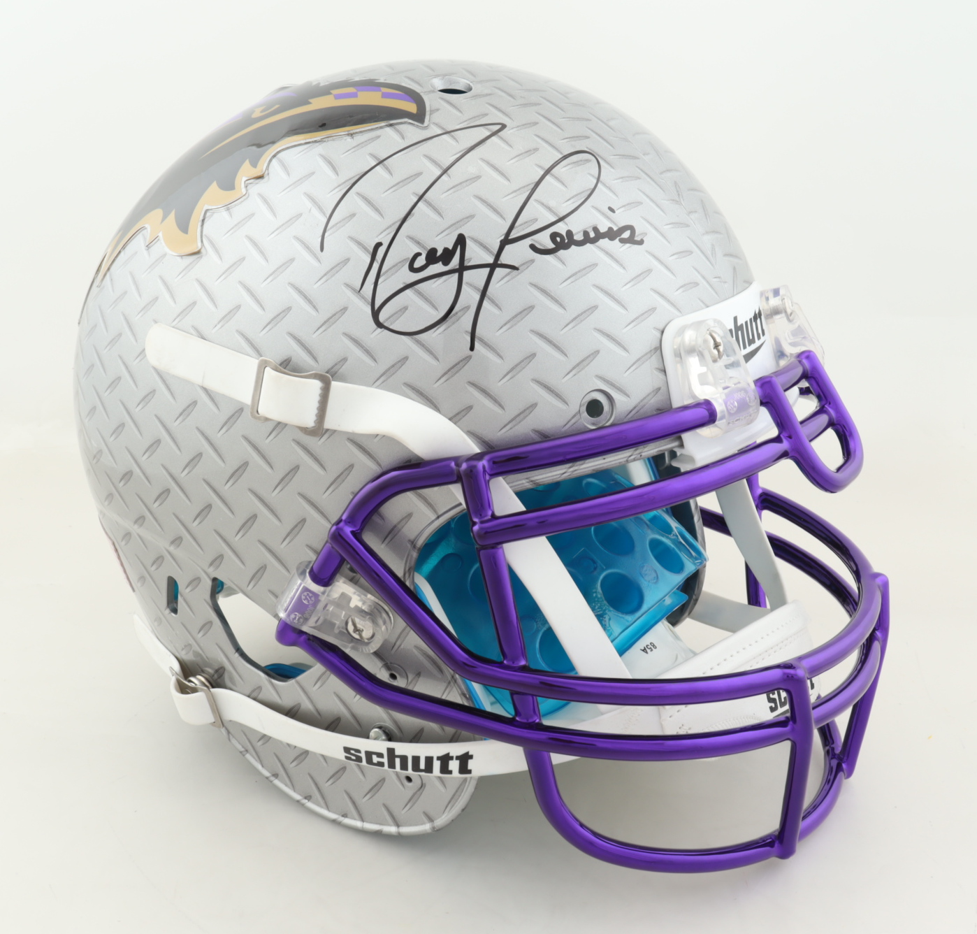 Schutt full-size authentic on-field hydro dipped Vengeance Helmet has been hand-signed by Ray Lewis (HOF). Please note, there is a stray mark on the helmet and the chinstrap is slightly stained.