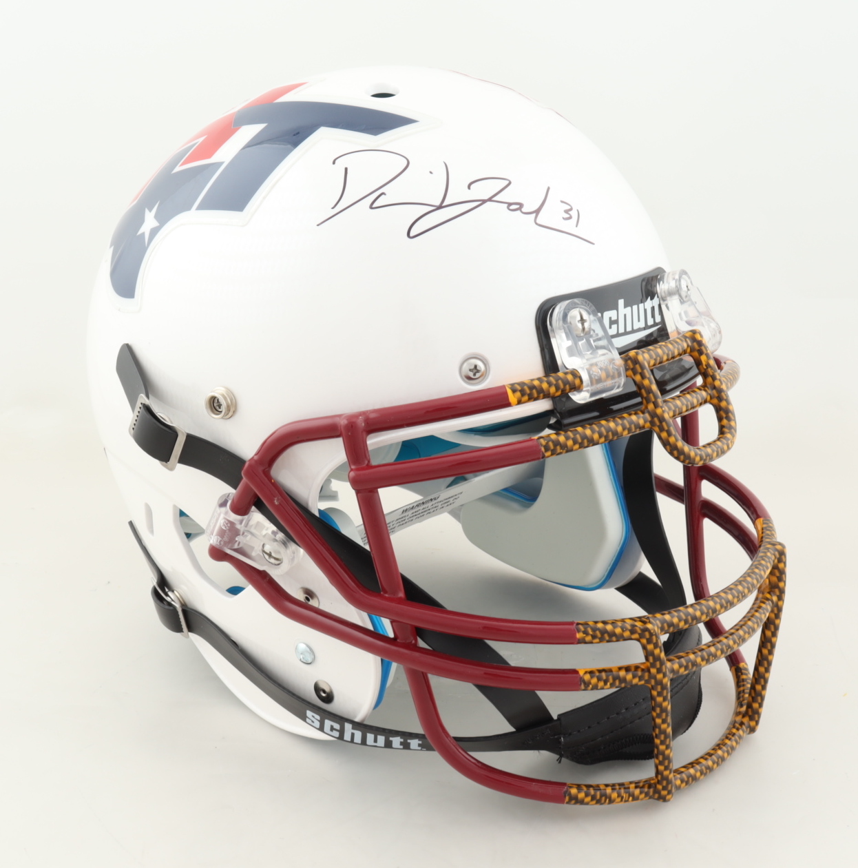 Schutt full-size authentic on-field helmet. Hand-signed by David Johnson. Please note, the helmet has a mark on the left side.