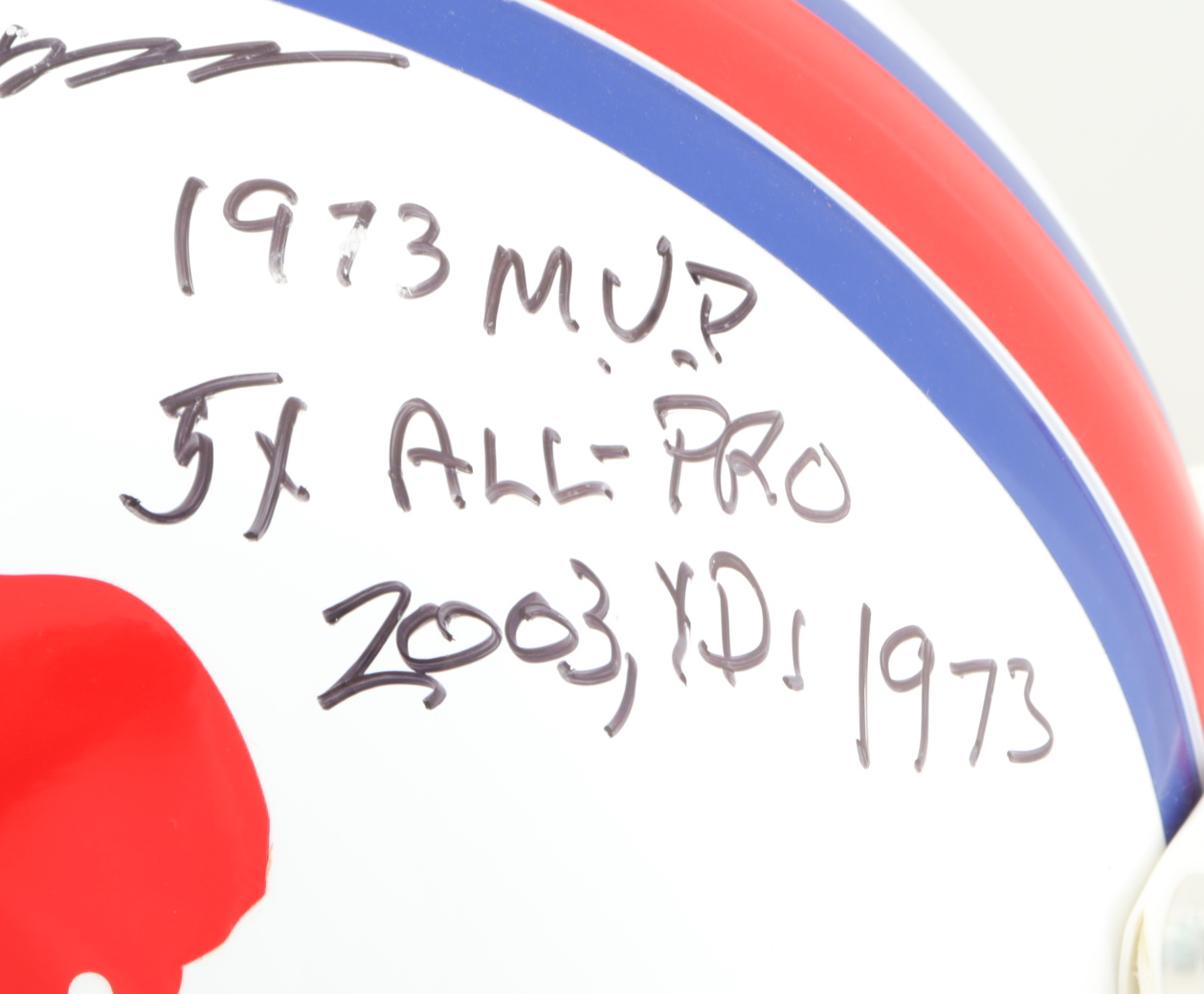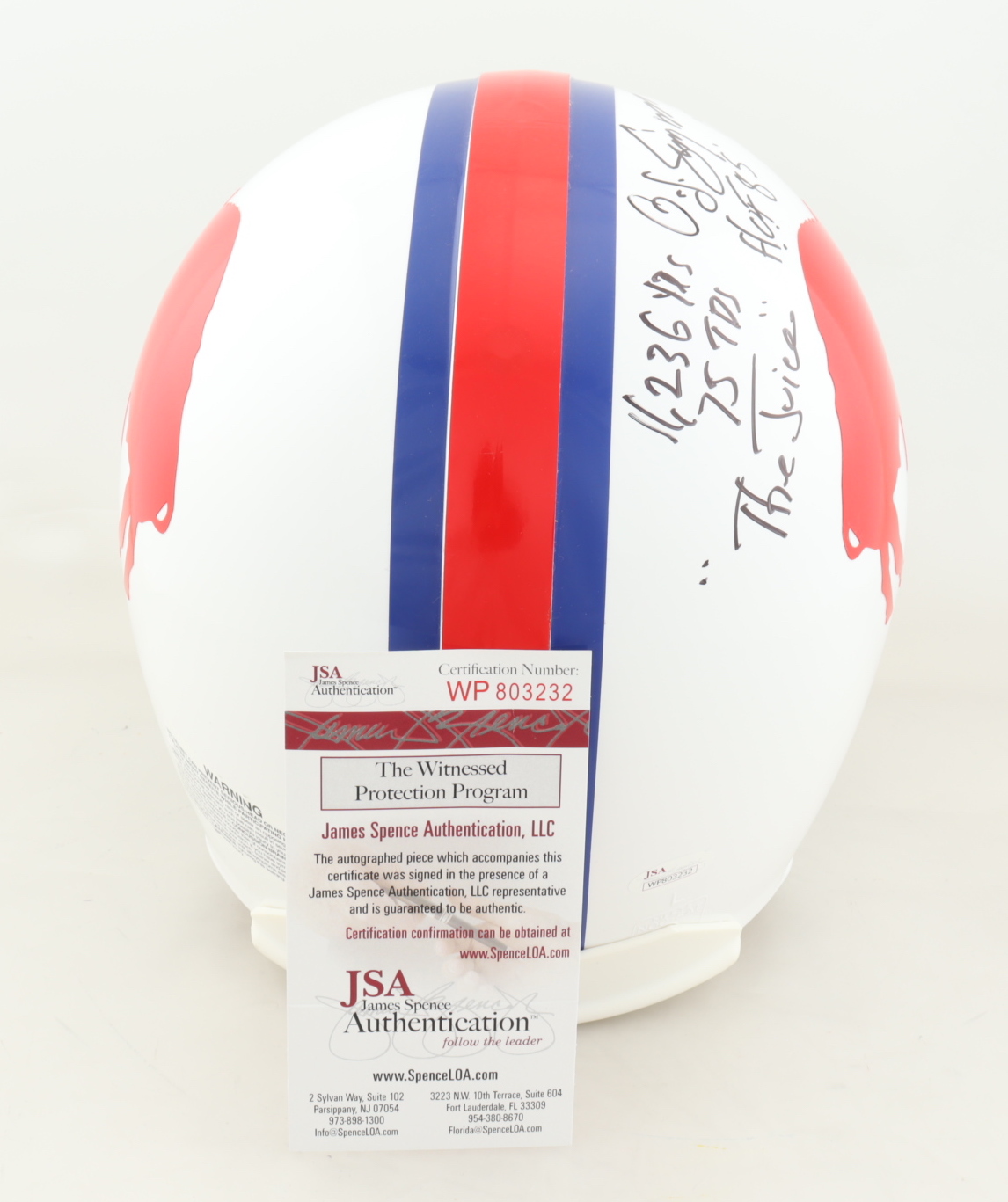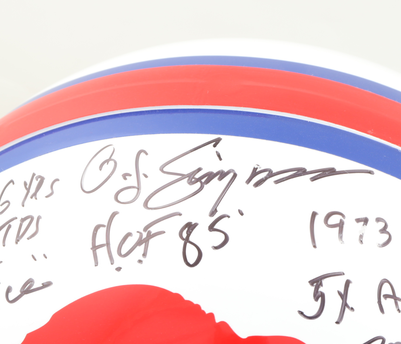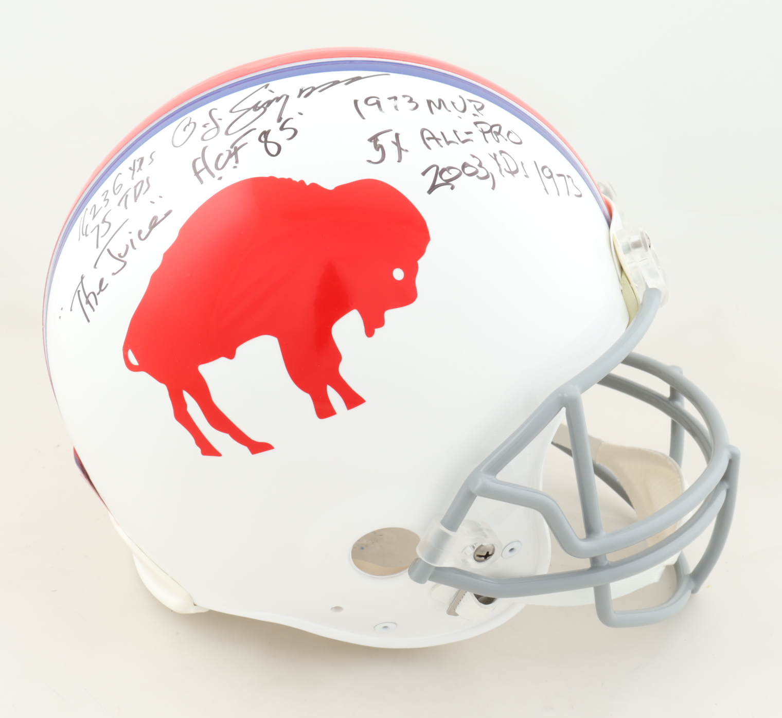 O.J. Simpson Signed Bills Full-Size Authentic On-Field Throwback Helmet with (7) Career Stat Inscriptions (JSA COA)