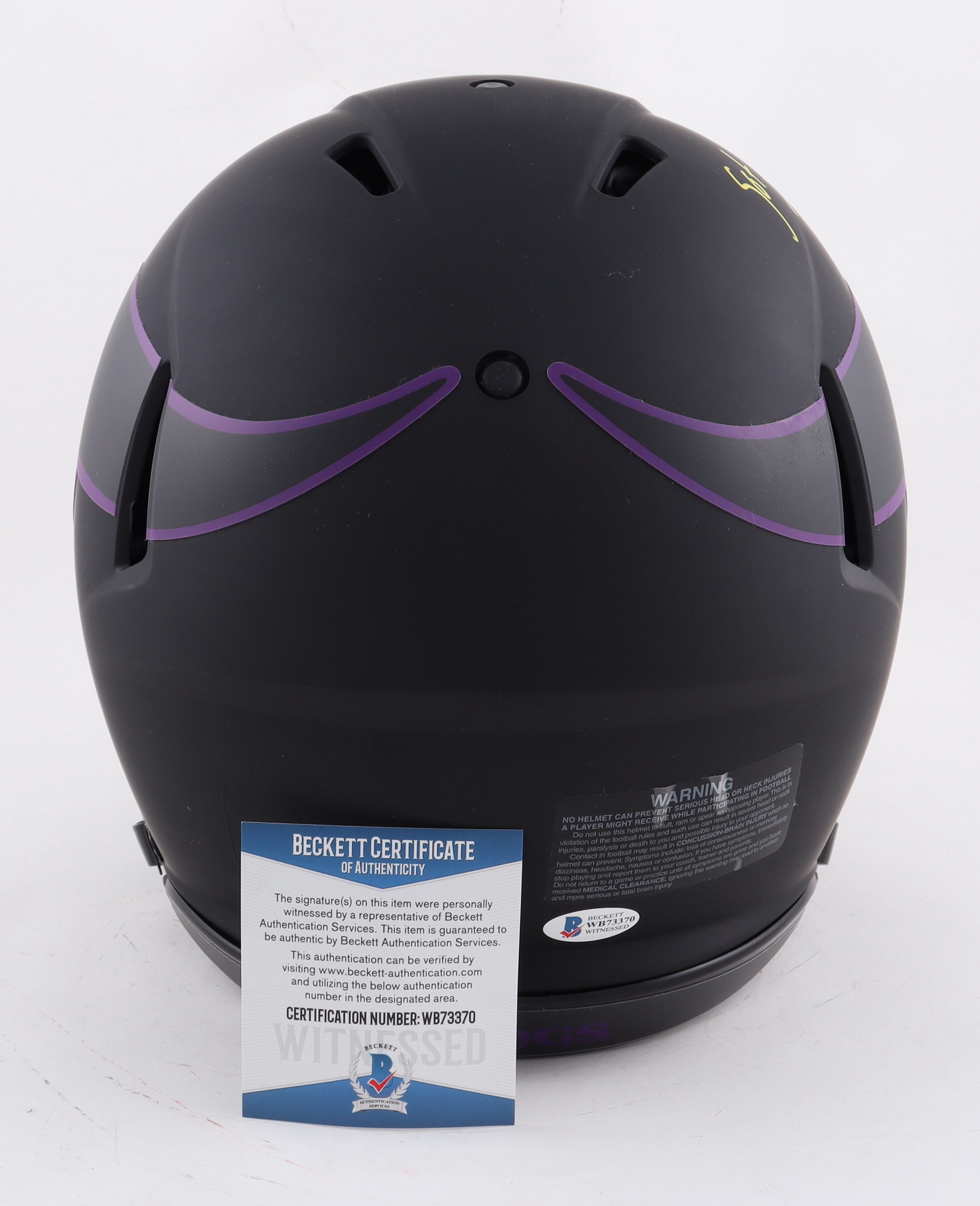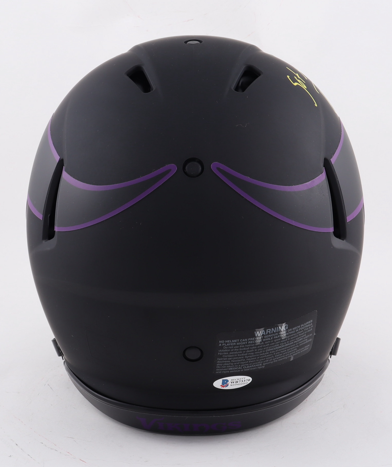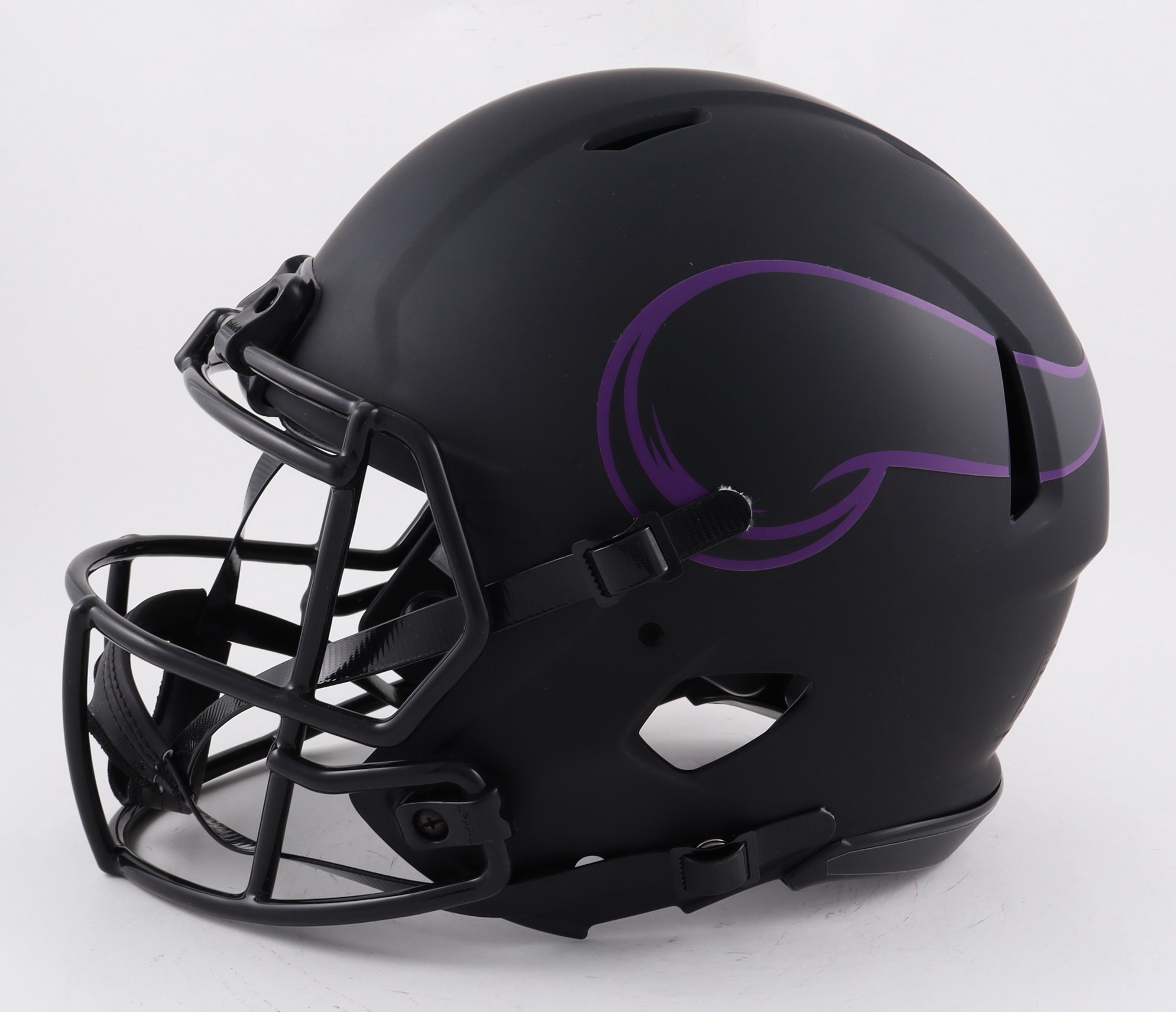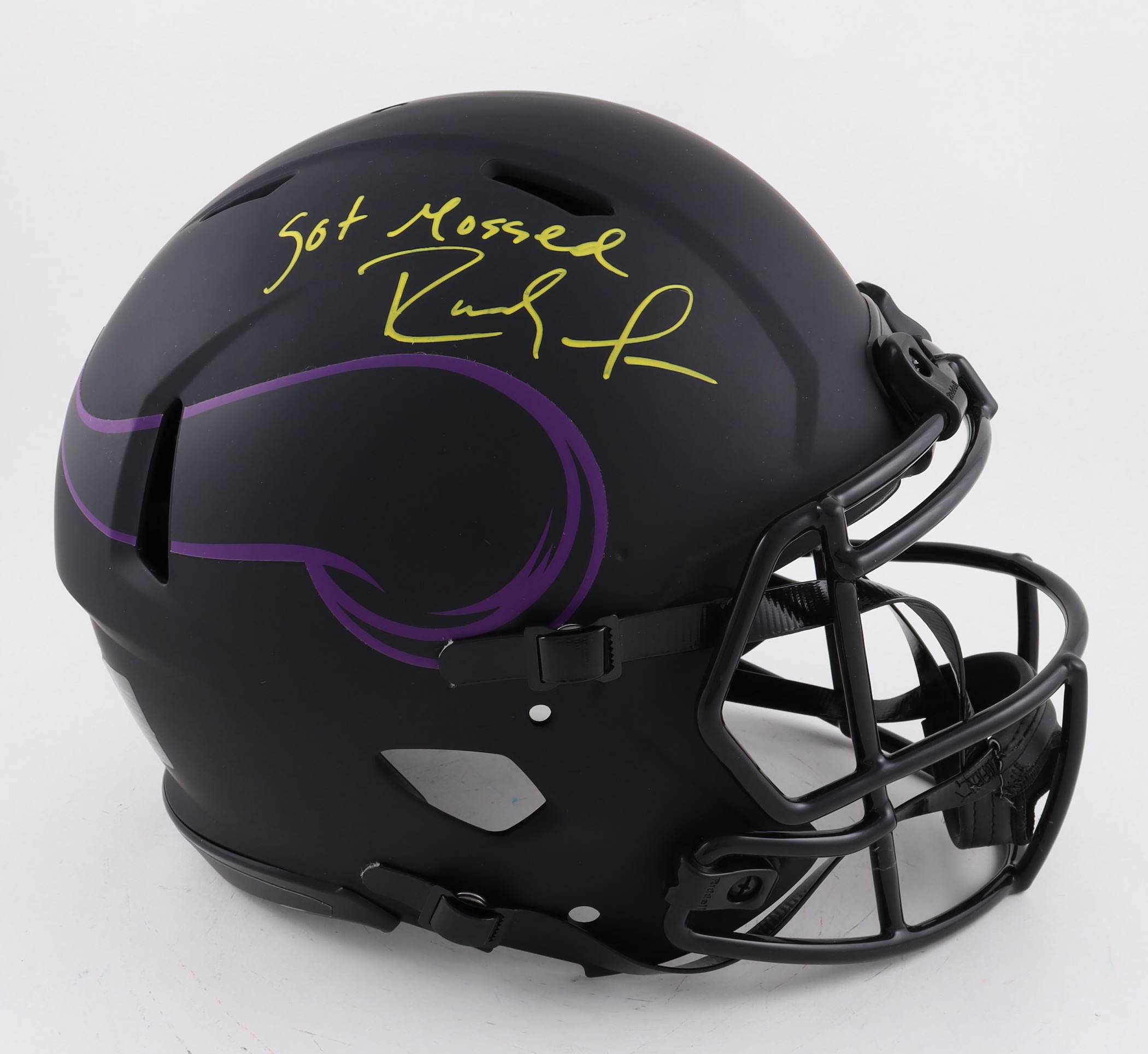 Riddell Minnesota Vikings full-size authentic on-field eclipse alternate speed helmet. Hand-signed by Randy Moss (HOF).
