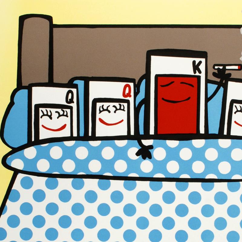 Pop artist Todd Goldman is known all across the globe for his whip-smart and wickedly funny puns and pictures. "Five Card Stud" is a limited edition lithograph on paper, numbered and hand-signed by Todd. Measures approximately 22.5" x 30.5" (no border).