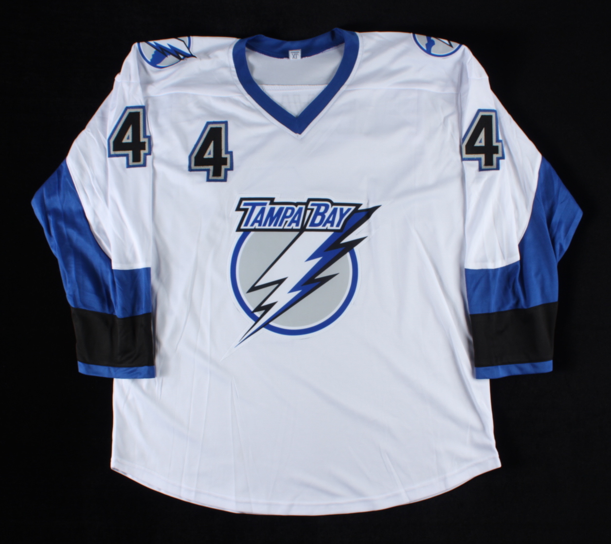 Custom on-ice style jersey. Everything is sewn on, size XL. Hand-signed by Vincent Lecavalier.