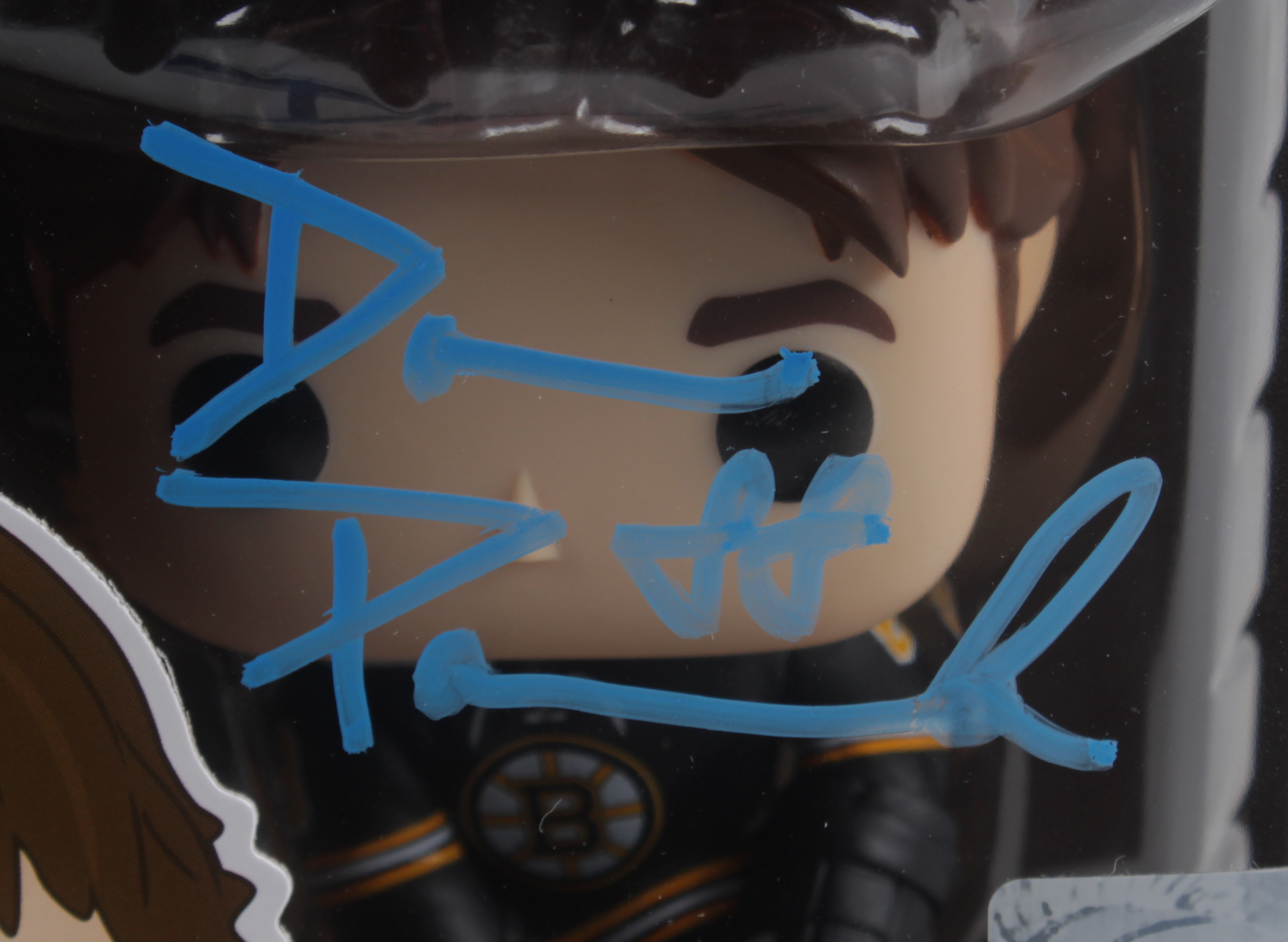 Figure measures approximately 4.25" tall. Hand signed on the original packaging by David Pastrnak (Boston Bruins). Please note, the box is slightly ripped in the corners and has a small mark on the back. See photos for details.