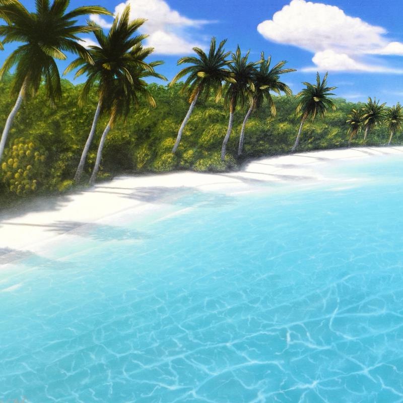 He has always had a fascination with tropical foliage and water. This, coupled with his great enjoyment of creating art that led him into the art profession. He loves seeing a blank canvas transform into a window of paradise that before was only a thought. His aim is to communicate a sense of being in paradise, such as the feeling one gets when one sees tropical water; the feeling of excitement and tranquility at the same time.