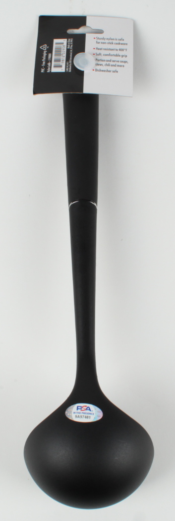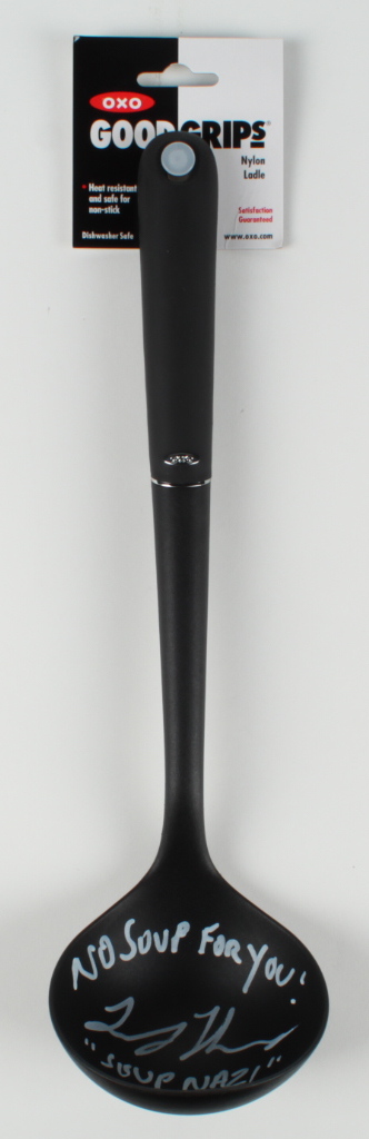 Good Grips nylon ladle prop replica measures approximately 13" in length and has been hand-signed by Larry Thomas (Yev Kassem, the Soup Nazi).