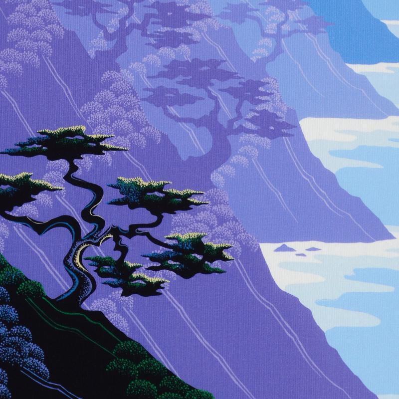 Larissa Holt, a student of distinguished artist Eyvind Earle (1916-2000), uses bold colors and breathtaking scenery to create images of Nature in her own unique style. "Bonsai" is a limited edition giclee on stretched canvas by Holt, numbered and bearing Holt's authorized signature. This piece comes gallery wrapped. Includes Letter of Authenticity. Measures approx. 10" x 12.5" x 1.5" (image).
