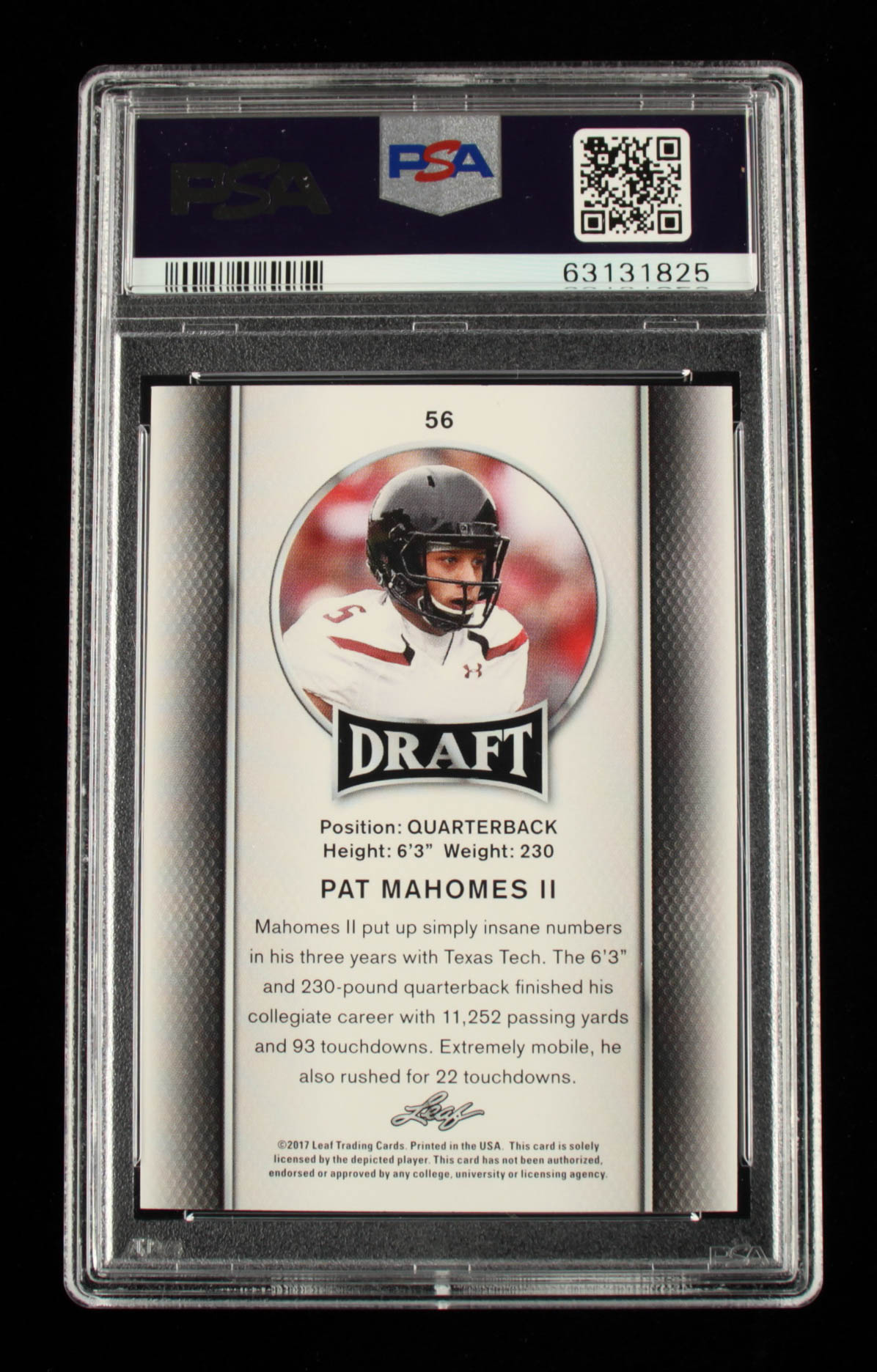 Patrick Mahomes II 2017 Leaf Draft #56 (PSA 10)