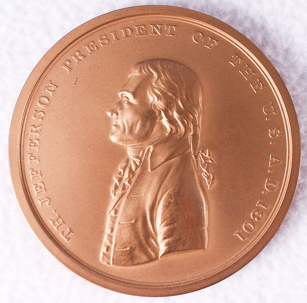Commemorative Thomas Jefferson Presidential Coin. The coin measures approximately 3" in diameter. The coin includes the original display case as shown in photos. Please see photos for more details regarding the condition of the coin.
