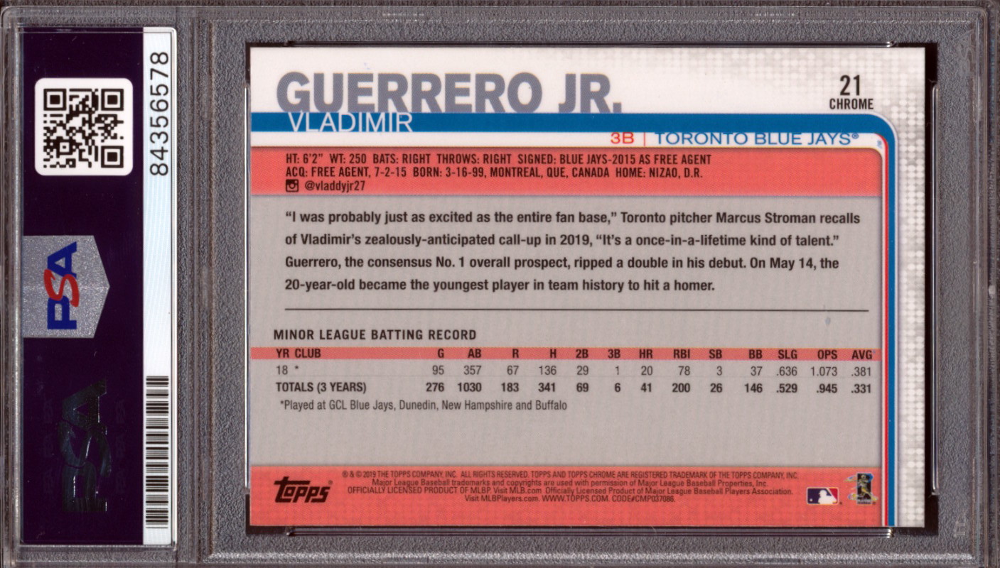Vladimir Guerrero Jr. Signed 2019 Topps Chrome Update #21 RC (PSA Encapsulated)