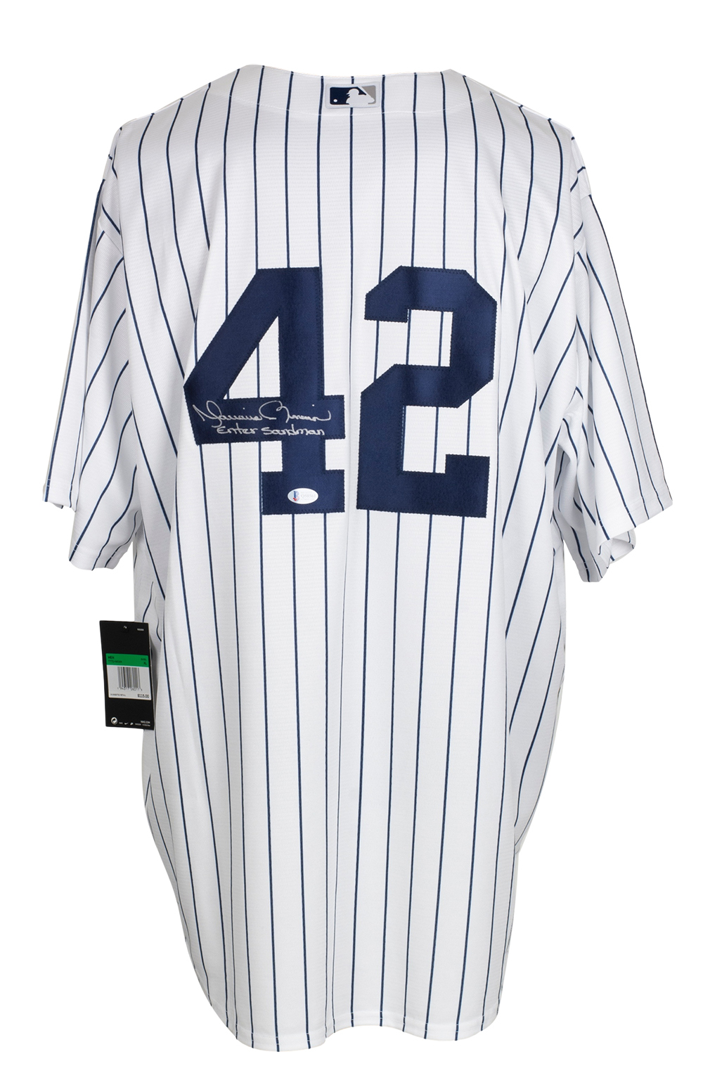 Mariano Rivera Signed Yankees Jersey Inscribed "Enter Sandman" (Beckett COA)