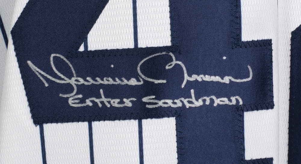 Nike on-field style jersey. Everything is sewn on. Hand-signed by Mariano Rivera (New York Yankees, HOF). Please see photos for details regarding the condition of the jersey.