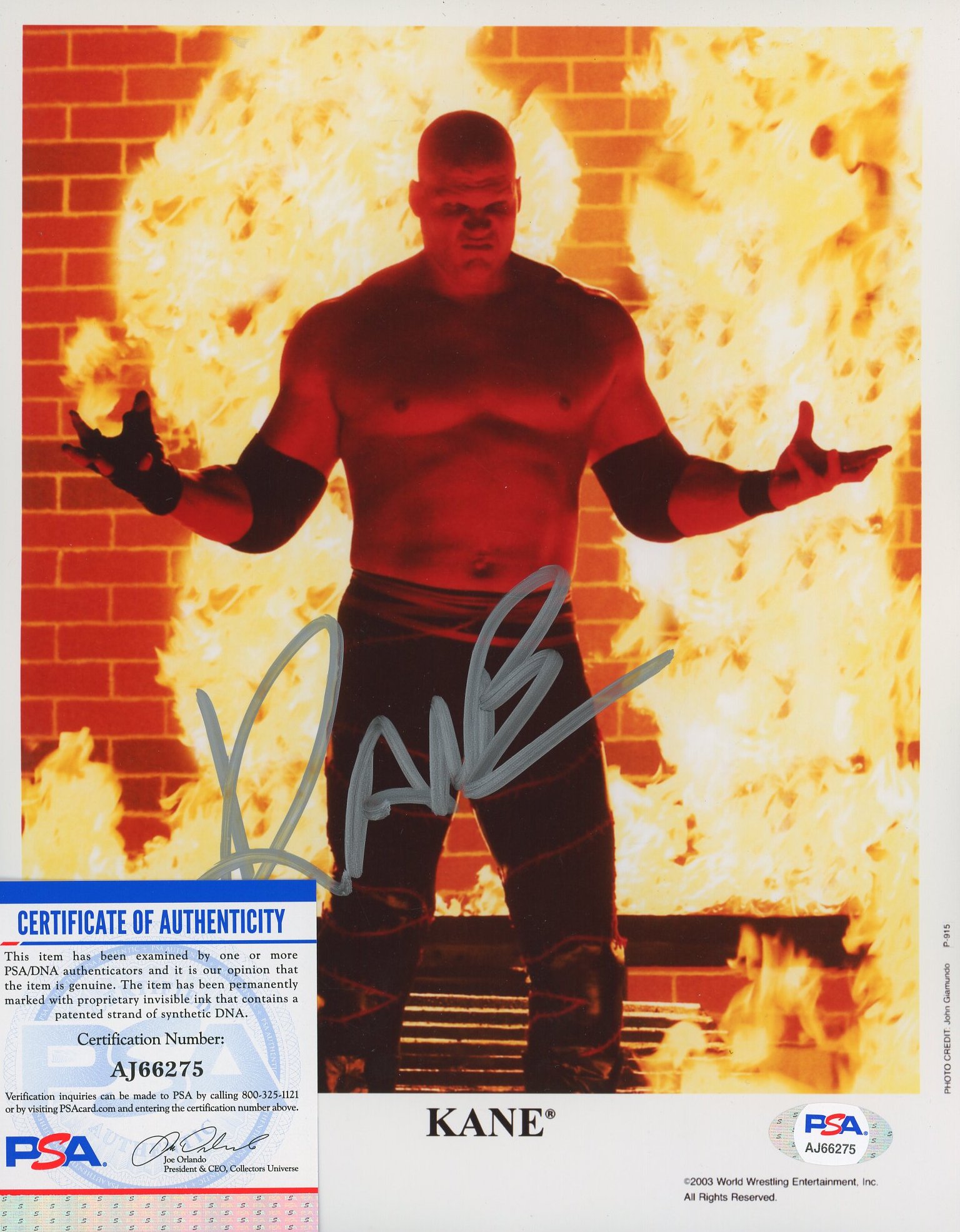 Kane Signed WWE 8x10 Photo (PSA)