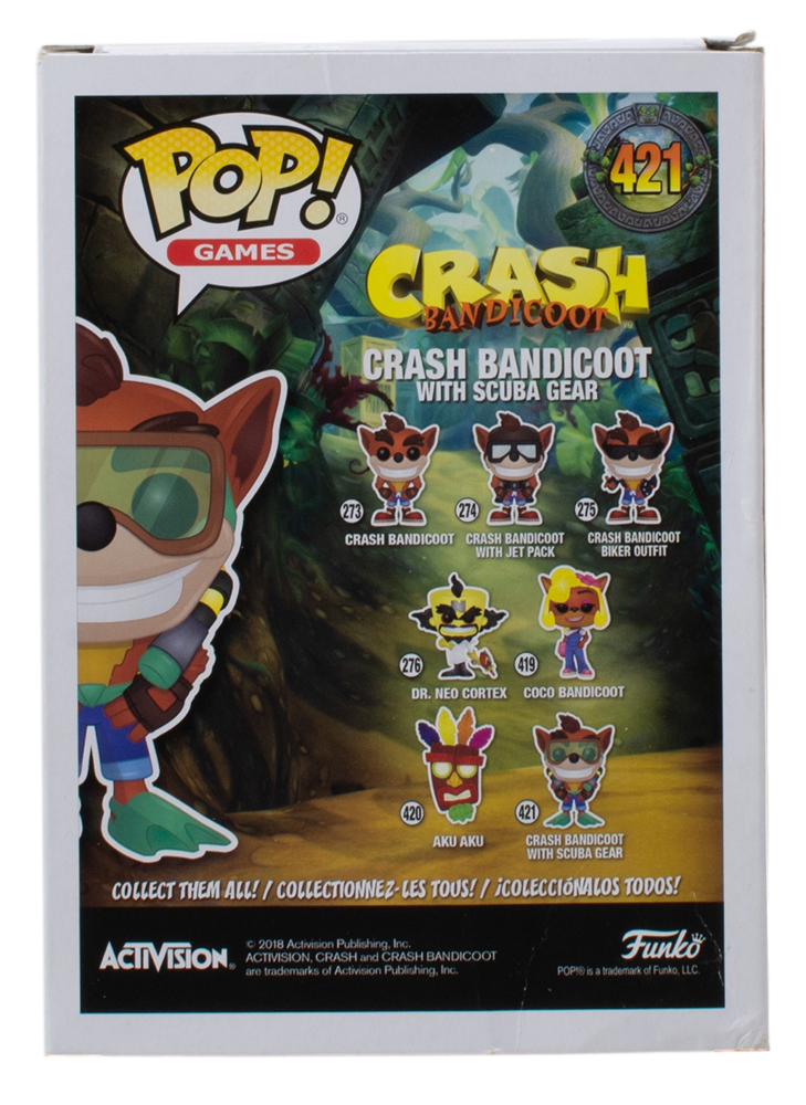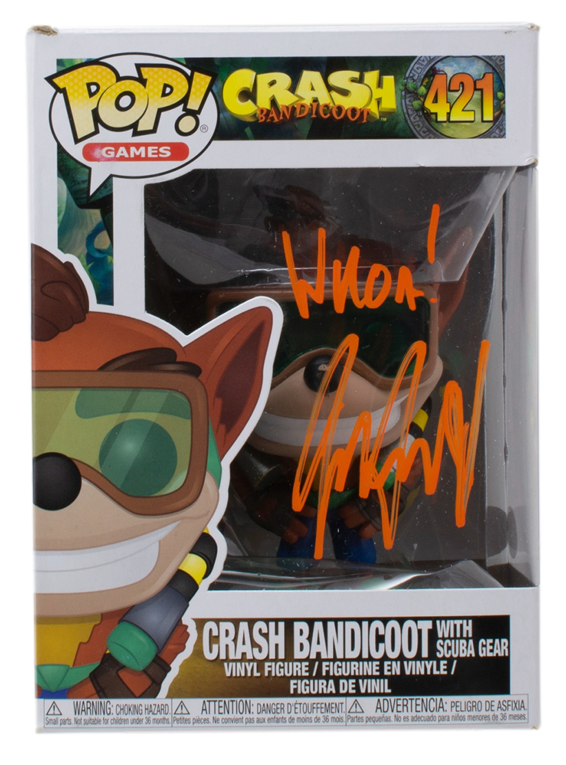 Jess Harnell Signed "Crash Bandicoot" #421 Crash Bandicoot with Scuba Gear Funko Pop! Vinyl Figure Inscribed "Whoa!" (JSA)