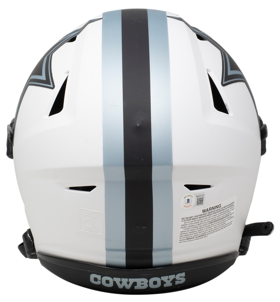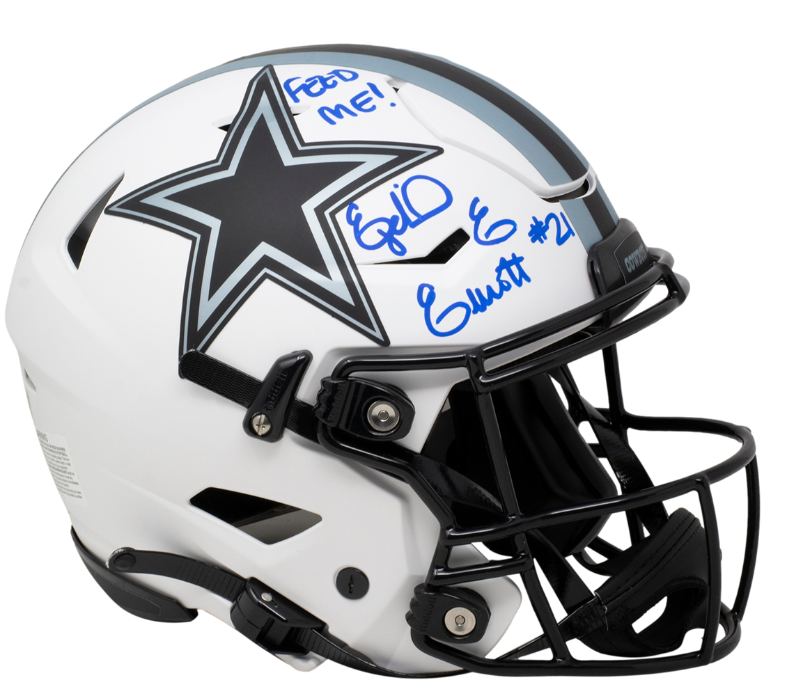 Riddell Dallas Cowboys full-size authentic on-field Lunar Eclipse Alternate Speedflex helmet. Hand-signed and inscribed by Ezekiel Elliott.