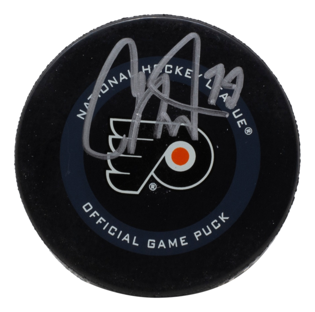 Carter Hart Signed Flyers Logo Hockey Puck with Display Case (Fanatics Hologram)