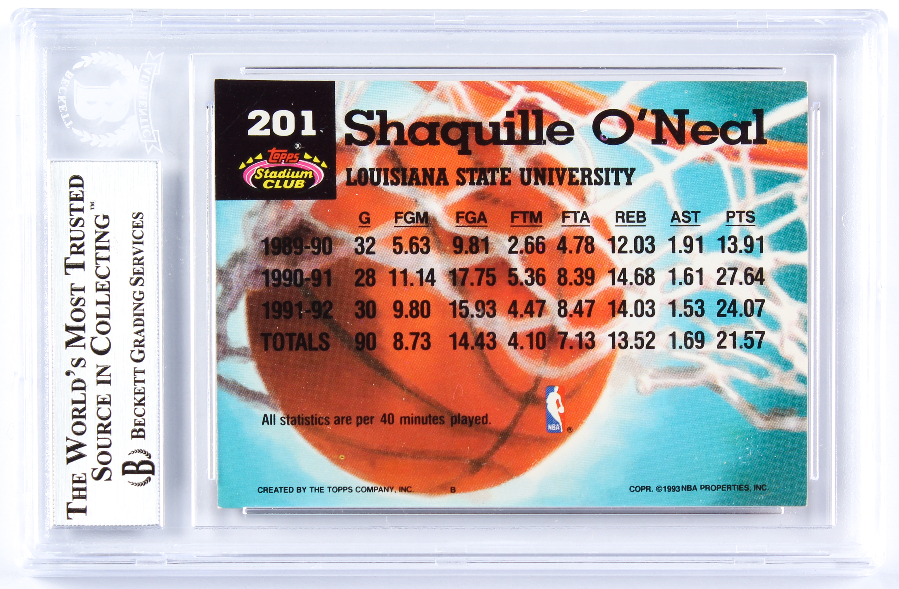 Shaquille O'Neal Signed 1992-93 Stadium Club #201 MC (BGS Encapsulated)