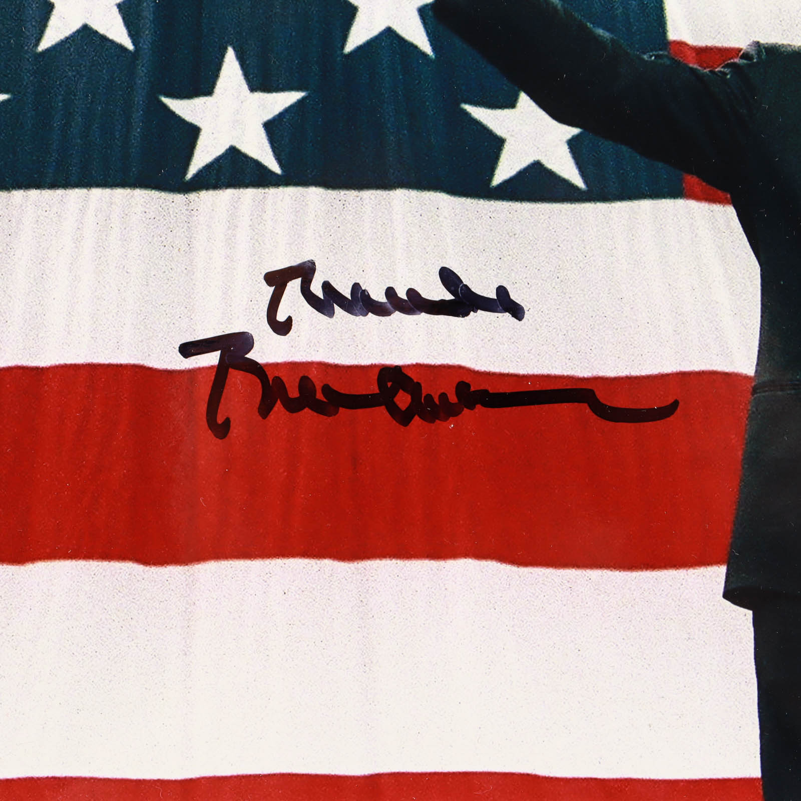 Custom matted photo display measures 11" x 14" in size and has been hand-signed by Bill Clinton. Please note, there are marks along the blue border of the display.