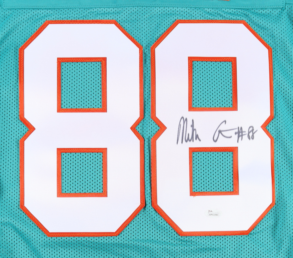 Custom on-field style jersey. Everything is sewn on, size XL. Hand-signed by Mike Gesicki.