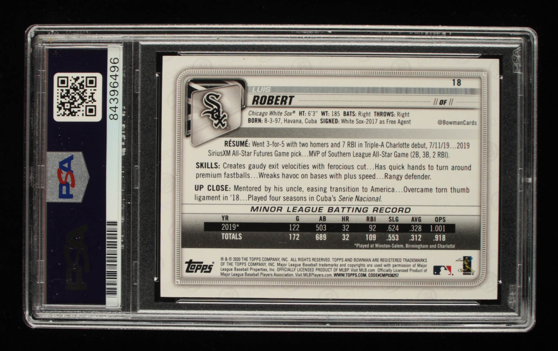 Luis Robert Signed 2020 Bowman #18 RC (PSA Encapsulated)