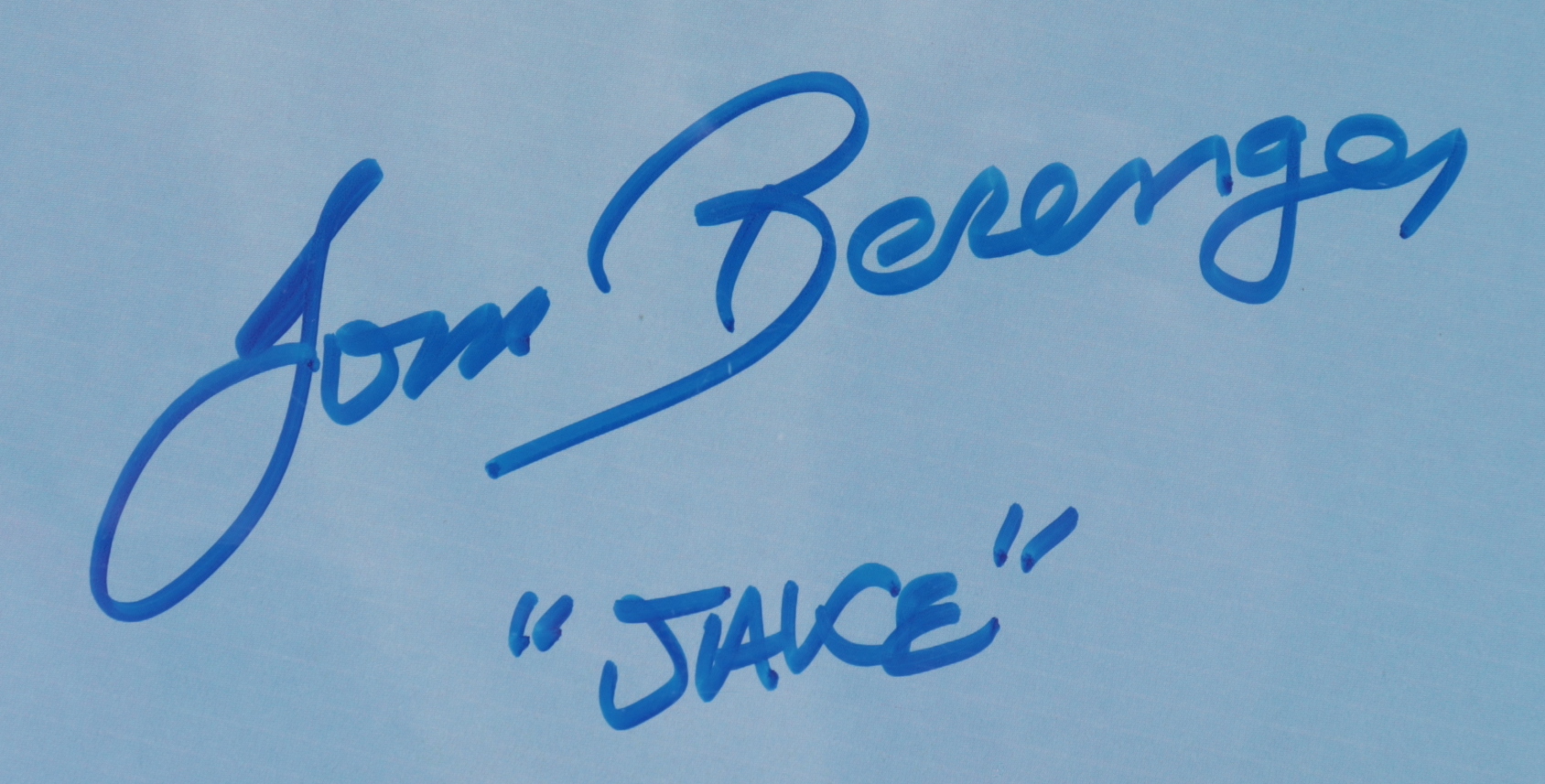 Movie poster measures 24" x 36" in size and has been hand-signed and inscribed by Charlie Sheen (Ricky "Wild Thing" Vaughn), Tom Berenger (Jake Taylor), and Corbin Bernsen (Roger Dorn). Please note, the top right corner of the poster is bent, and the edges show signs of wear.