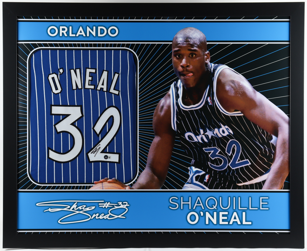 Shaquille O'Neal Signed 35x43 Custom Framed Jersey (Beckett COA) (See Description)