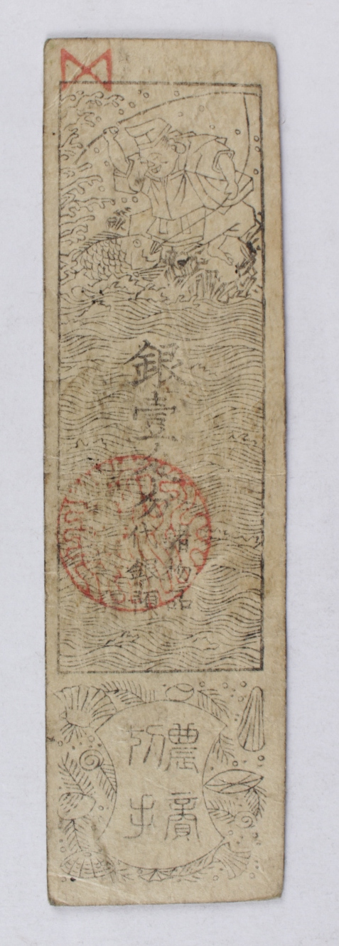 17-1800's Feudal Japan, Edo Period - 5 Silver Monme Hansatsu Clan Note