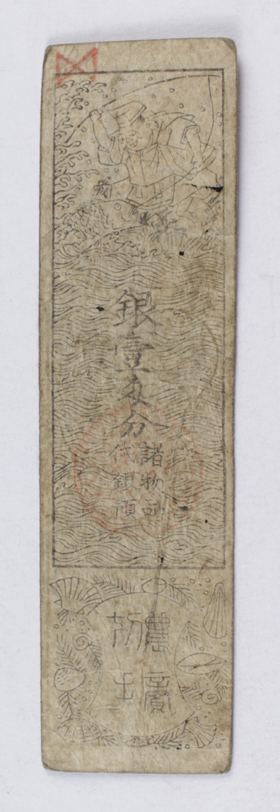 17-1800's Feudal Japan, Edo Period - 5 Silver Monme Hansatsu Clan Note