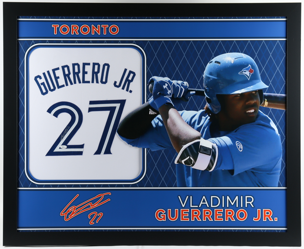 Vladimir Guerrero Jr. Signed 35.5x43.5 Custom Framed Jersey (JSA Hologram) (See Description)