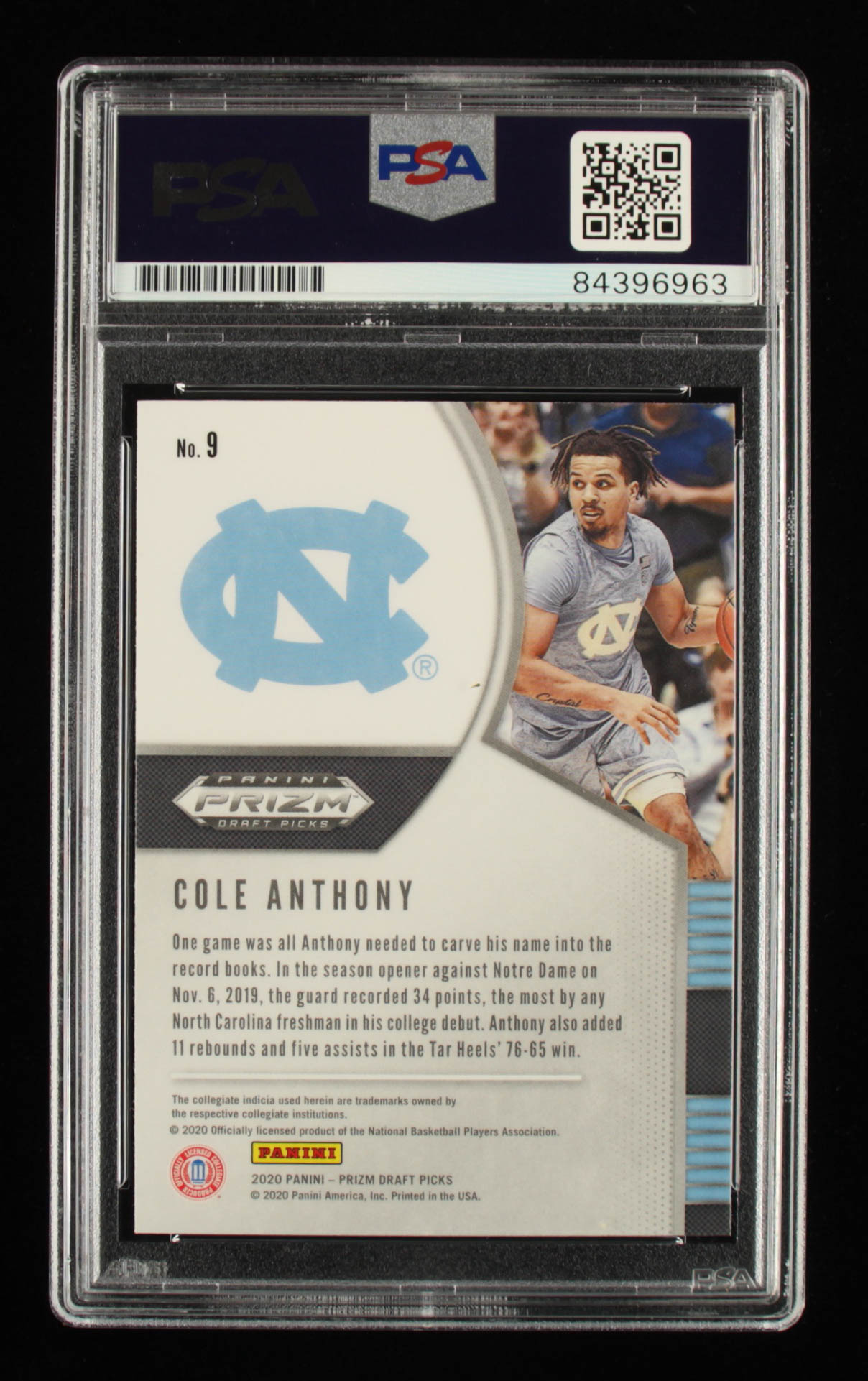 Cole Anthony Signed 2020-21 Panini Prizm Draft Picks #9 (PSA Encapsulated)