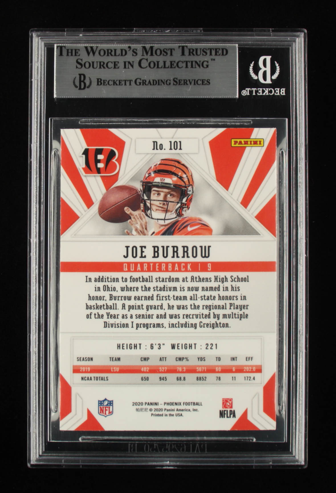 Joe Burrow Signed 2020 Panini Phoenix Fire Burst #101 RC (BGS Encapsulated)