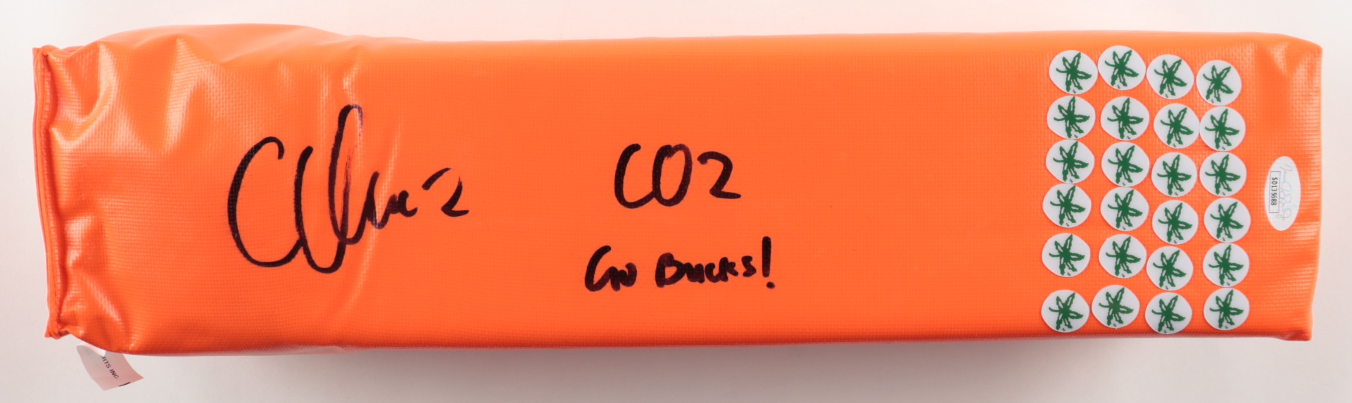 Chris Olave Signed Endzone Pylon Inscribed "Go Bucks!" & "CO2" (JSA COA) (See Description)
